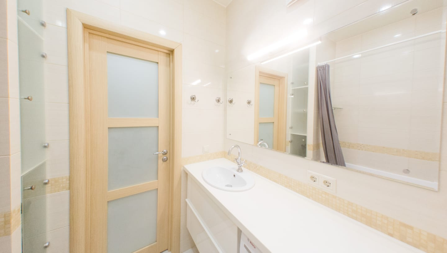 Удобная планировка: отдельная комната, просторная кухня с выходом на лоджию, большой совмещенный санузел. Окна квартиры выходят во двор. Установлен кондиционер, вся необходимая бытовая техника, водонагревательный бак. Ремонт сделан в 2017 году для себя в светлых нейтральных тонах, что позволит новому собственнику без проблем декорировать квартиру по своему вкусу. В стоимость входит встроенная кухня с бытовой техникой, мебель в комнате, телевизоры, стиральная машина.