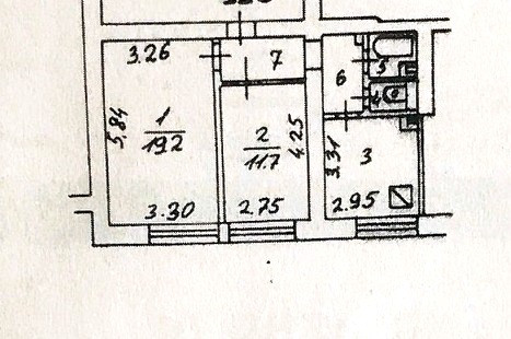 Высота потолков 2.64 м