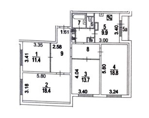 4-комнатная квартира, 97.1 м2, этаж 6 / 22, на продажу в Москве, улица Яблочкова, 49