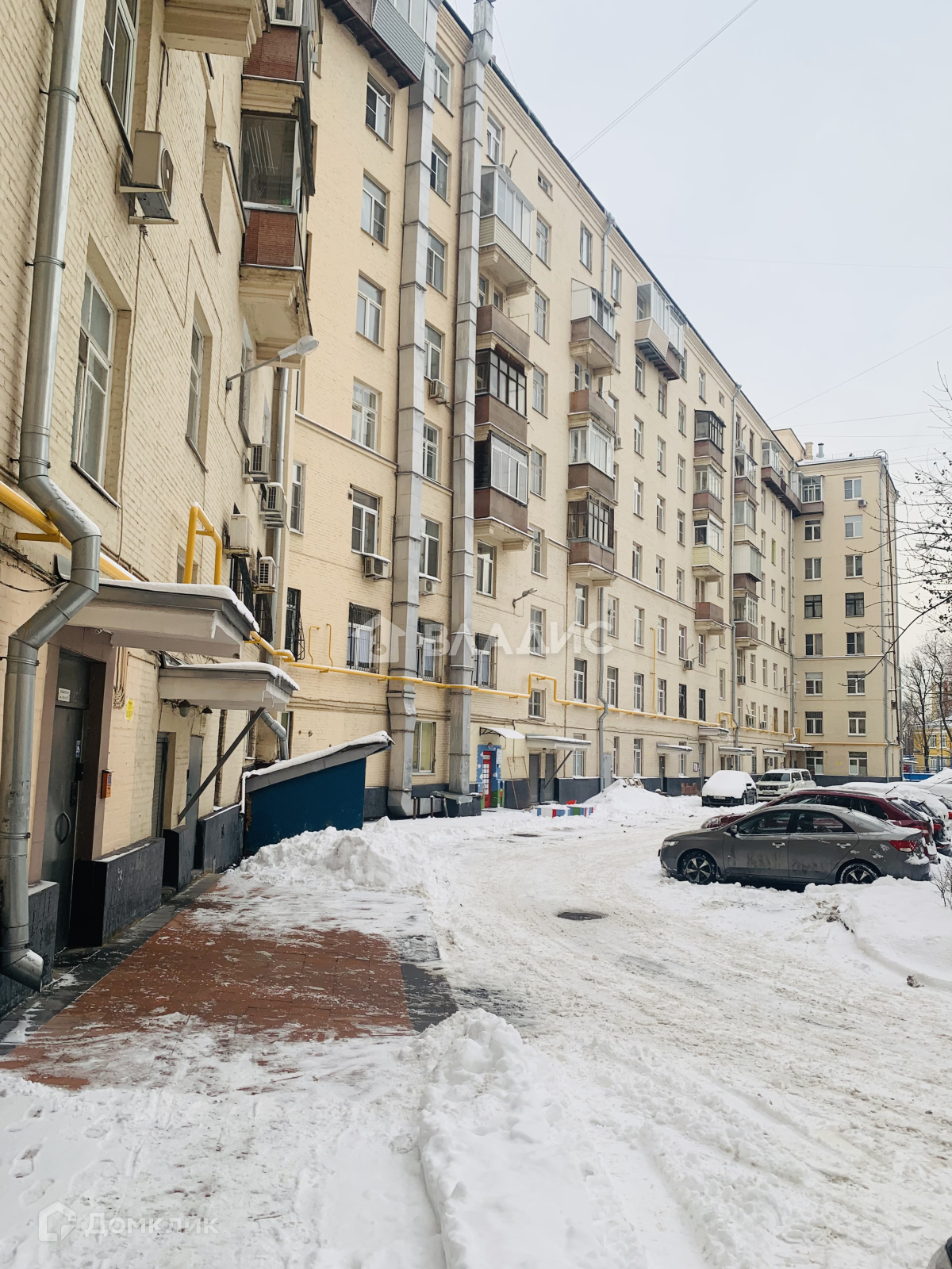Квартира расположена восьмиэтажном доме на шестом этаже. Дом расположен в историческом районе Москвы с благоустроенной территорией и удобным транспортным сообщением. Во дворе дома находится детская площадка и фонтан, что способствуют приятному отдыху и прогулкам с детьми.