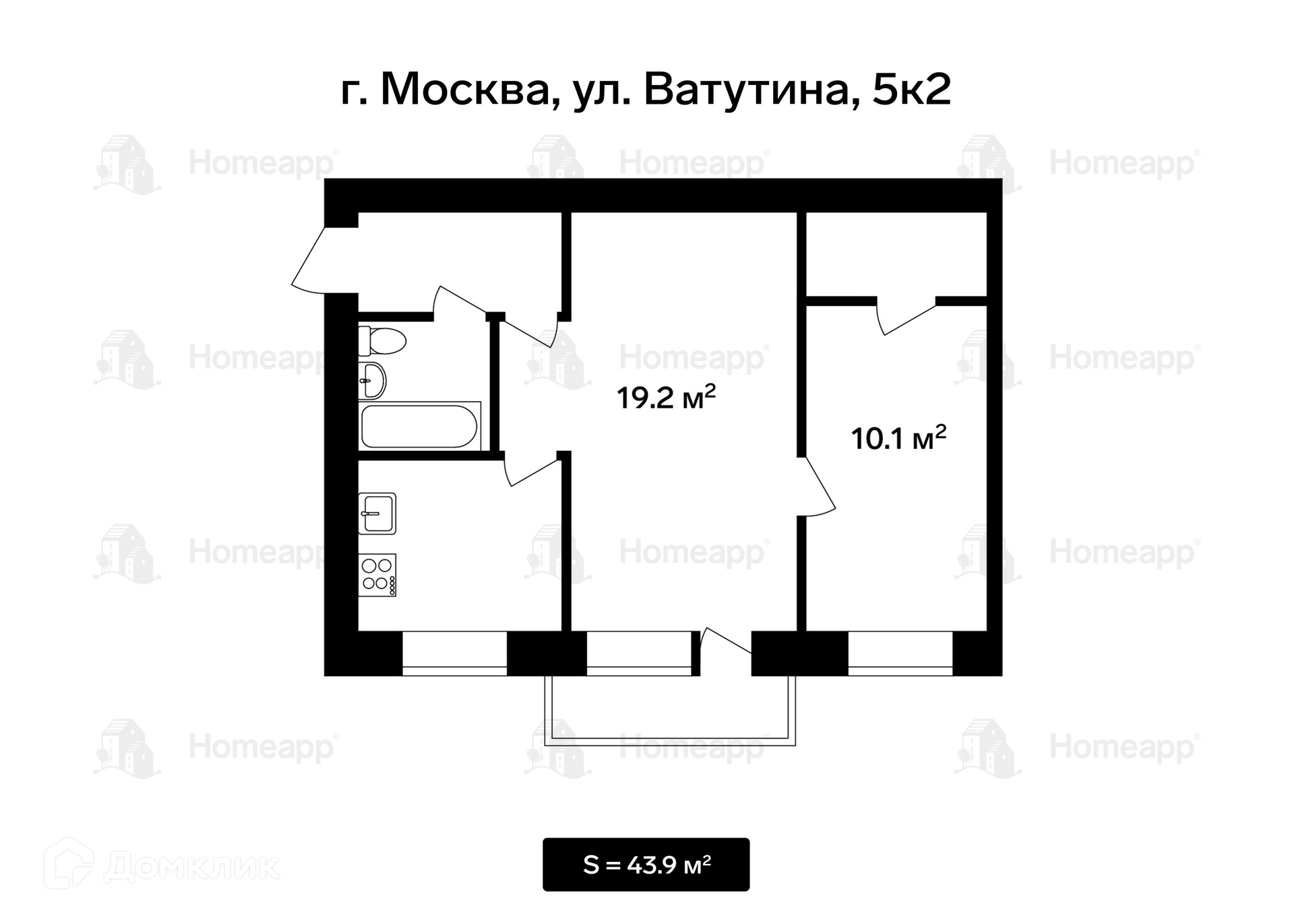 2-комнатная квартира, 44 м2, этаж 5 / 5, на продажу в Москве, улица Ватутина, 5к2