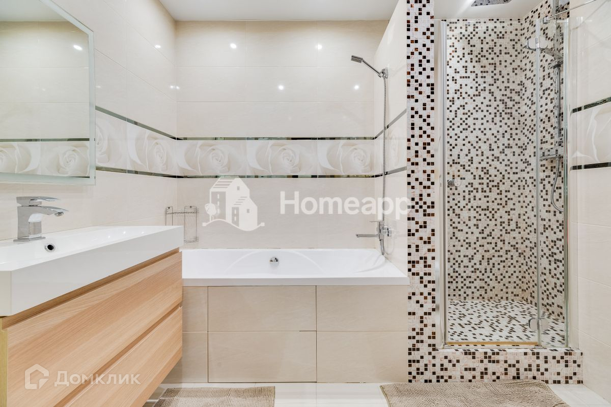 На кухне установлен кондиционер, в большой прихожей - вместительный шкаф-купе, приятный бонус — душевая кабина с ванной в объединенном санузле.