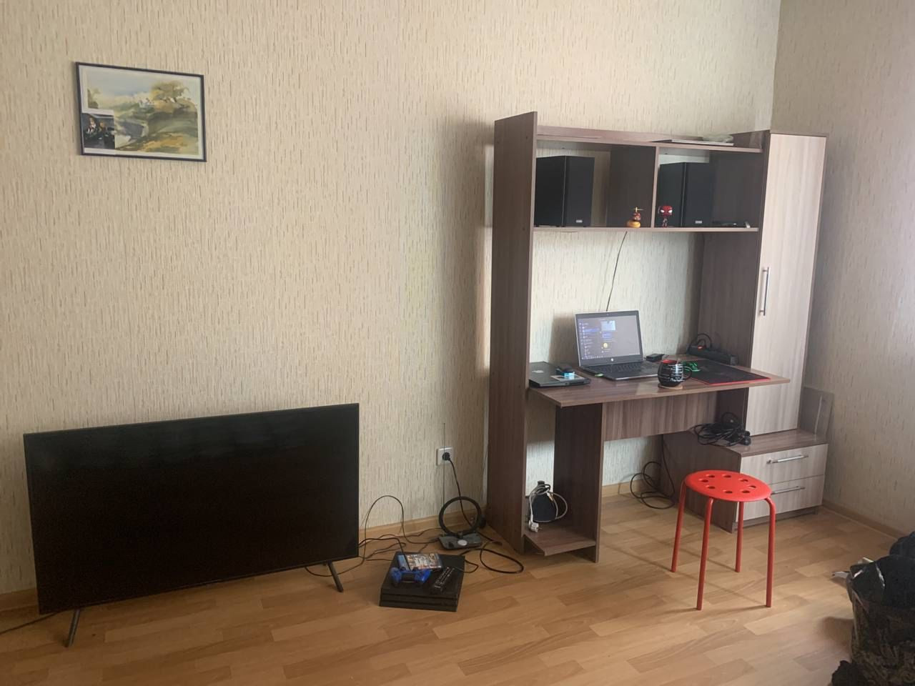 Просторная жилая комната с большими окнами . Сторона солнечная . Хорошие  соседи , дом новый  2017 года постройки .Совмещённый санузел.  Есть место под гардеробную . Ремонт от застройщика в нормальном состоянии. В квартире есть мебель и техника , она вся остаётся .