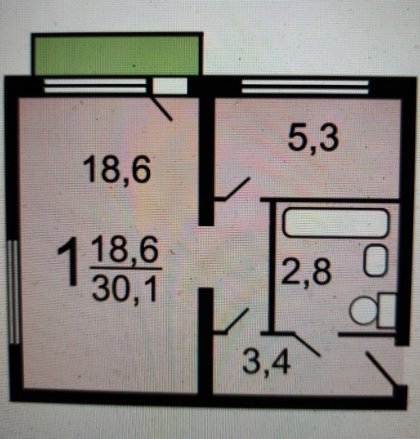 Жилая площадь 18.6 м2