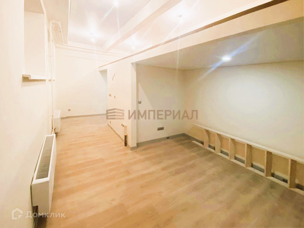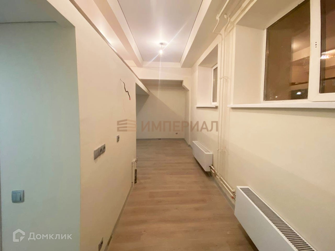 - Установлены счетчики электричества и воды, радиаторы, натяжные потолки, ламинат.