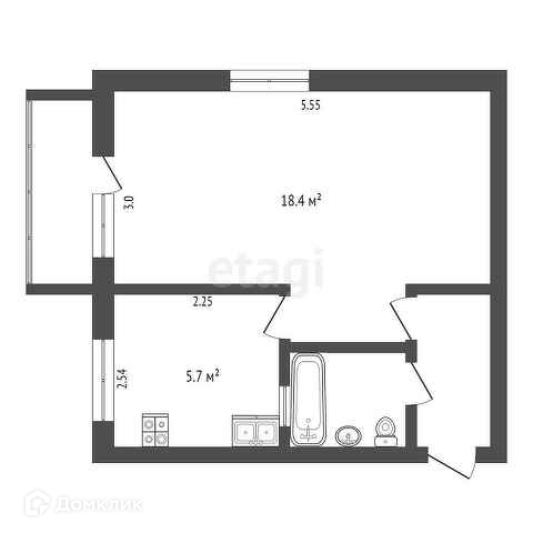 Площадь кухни 5.7 м2