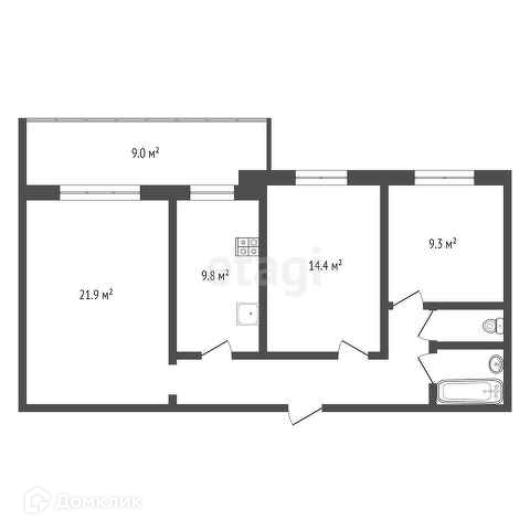 Общая площадь 74.1 м2