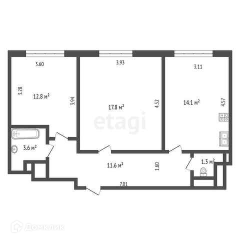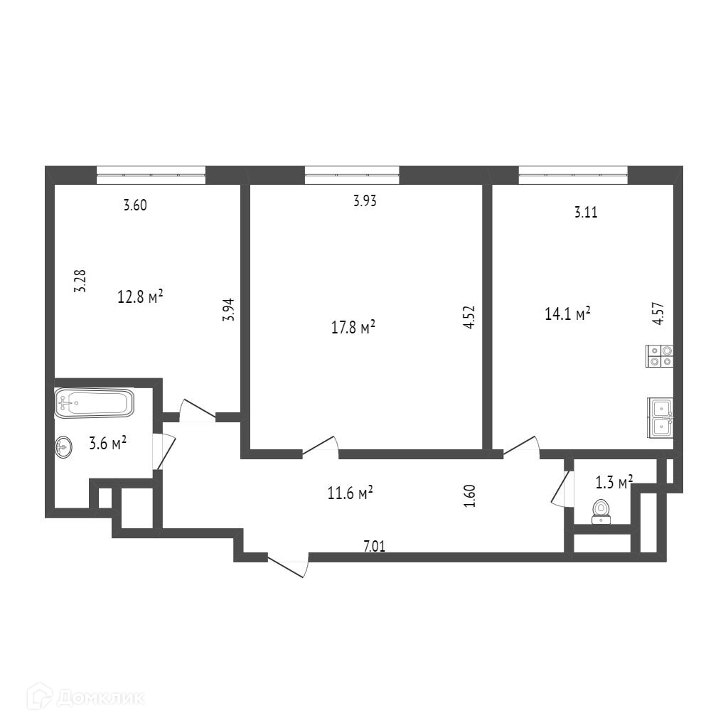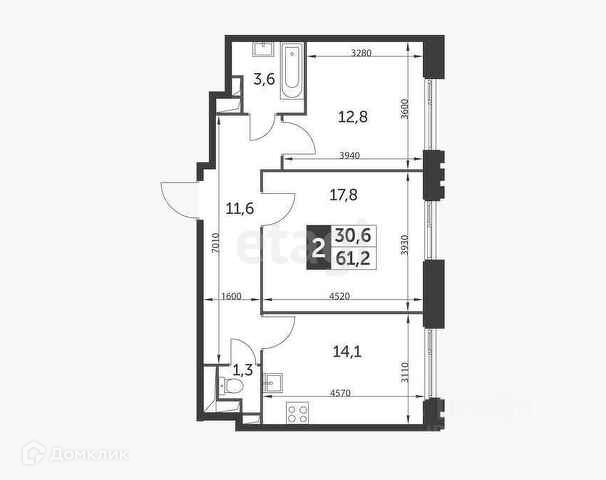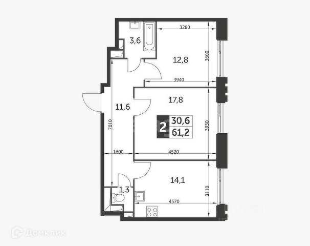Общая площадь 61.2 м2