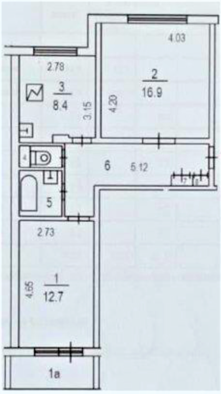 Балкон, лоджия 1 балкон