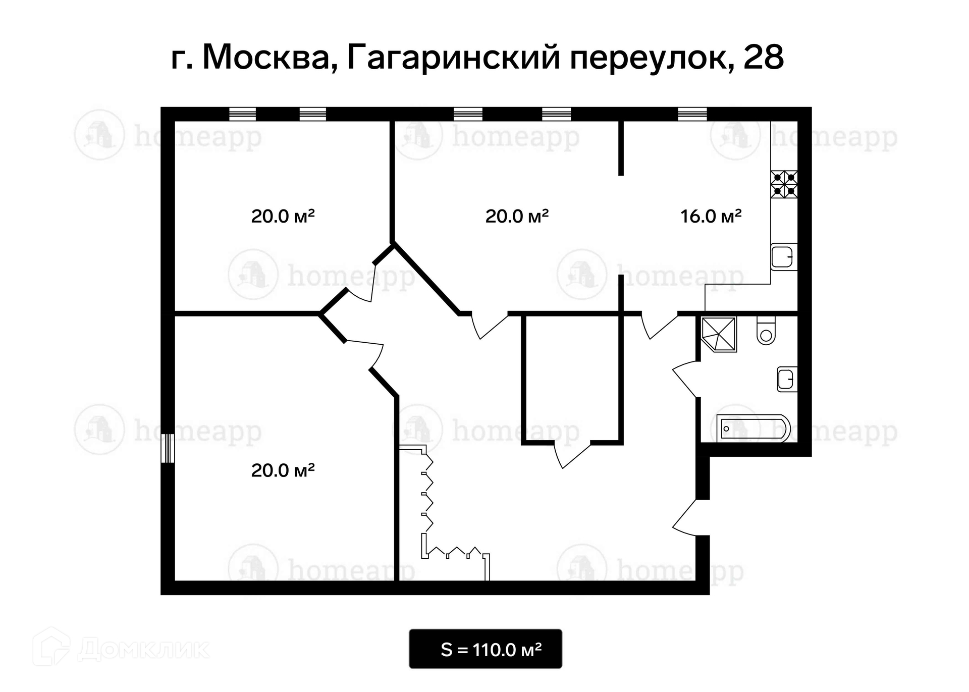 3-комнатная квартира, 110 м2, этаж 4 / 4, на продажу в Москве, Гагаринский переулок, 28