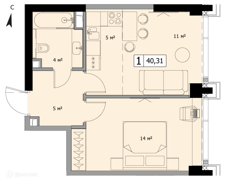 Общая площадь 40.31 м2