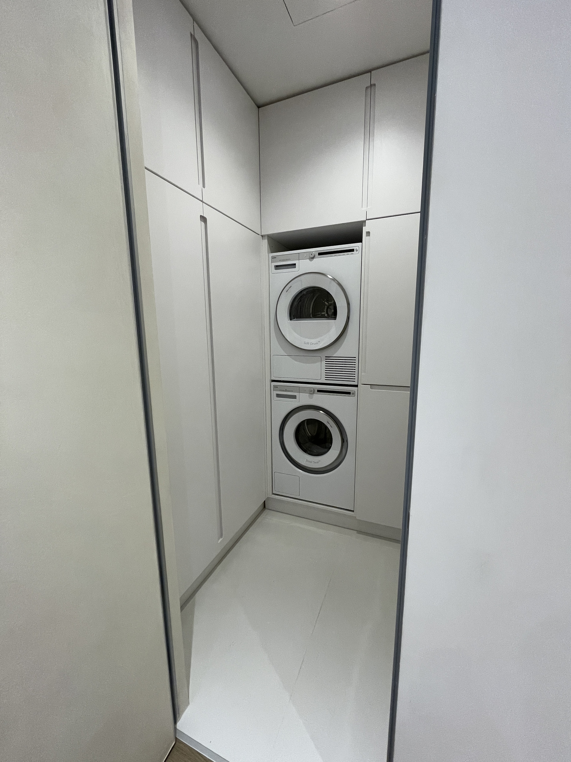 В квартире выполнен качественный ремонт с нуля. Демонтировали white-box от застройщика и заново проложили все коммуникации, включая возведение стен и стяжку пола. Разводка отопления и водоснабжения Rehau, электрика по ГОСТу. Во всех комнатах и в кухне установлены индивидуальные канальные системы кондиционирования. Квартира снабжена постирочной с премиальной стиральной и сушильной машиной Asko (серия Logic).