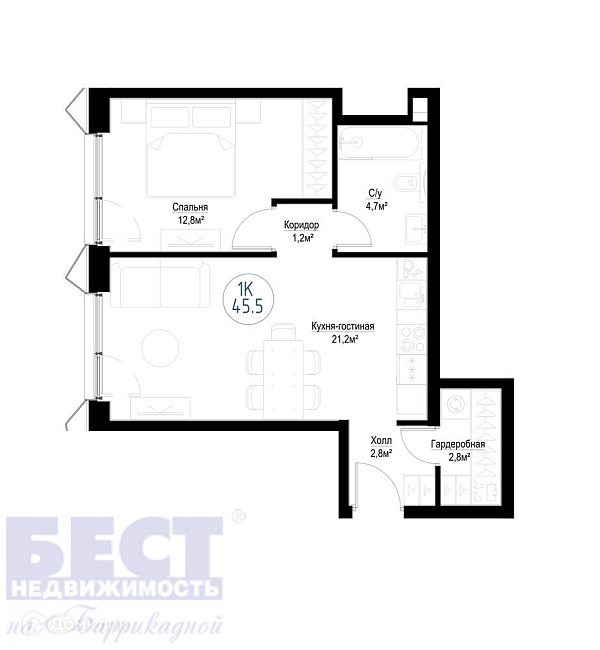Общая площадь 46 м2