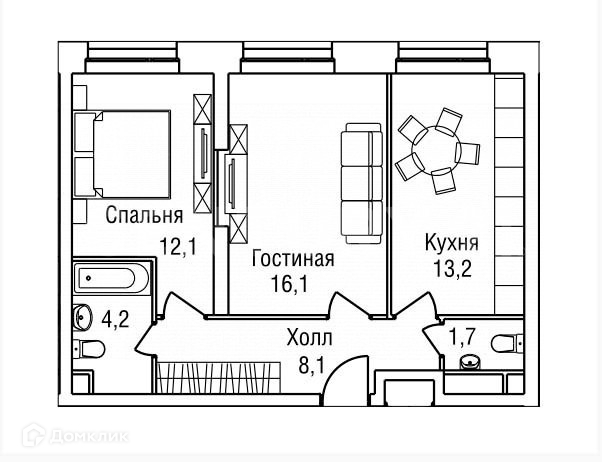 Жилая площадь 28.7 м2