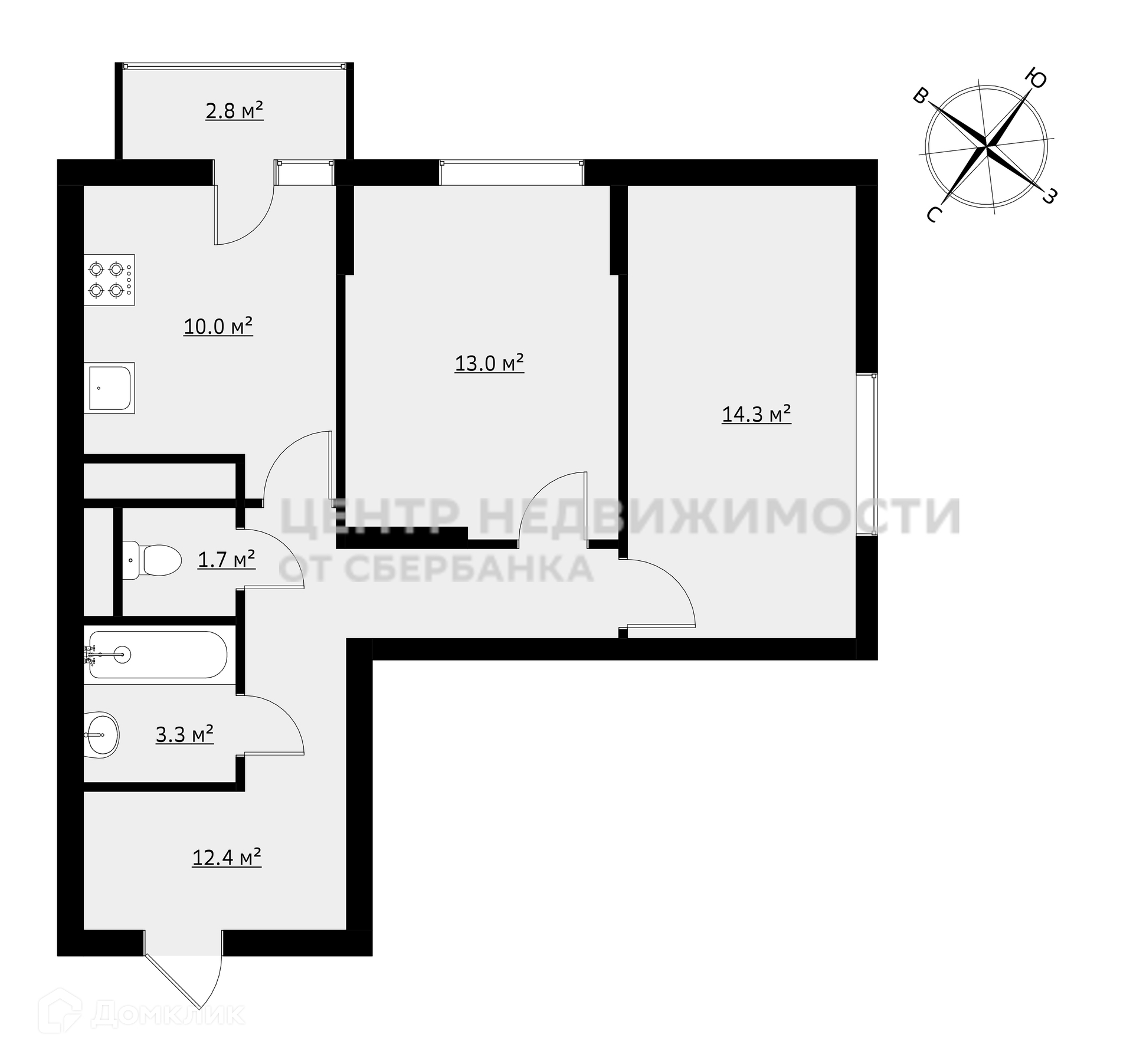 Общая площадь 55.1 м2