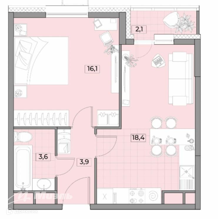 Изначальной планировкой застройщика предусмотрено: большая изолированная спальня, комфортная кухня-гостиная, совмещенный санузел.