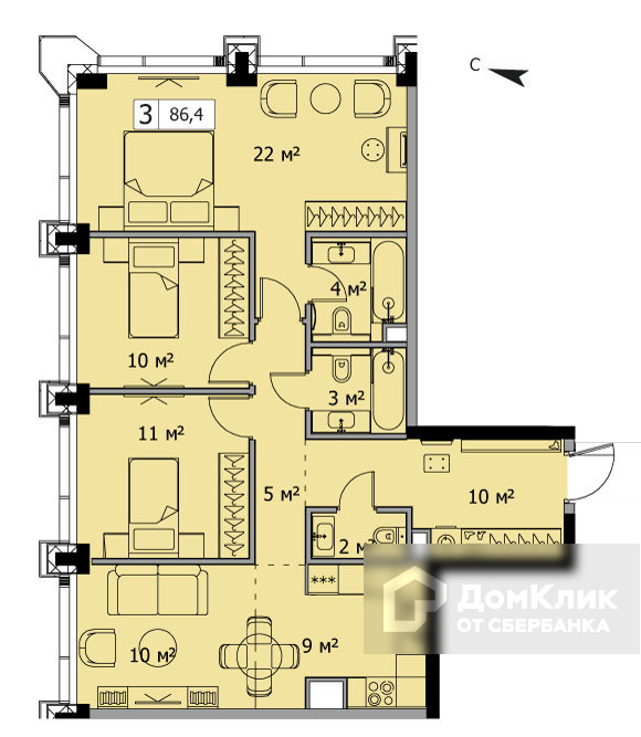 Количество комнат 3