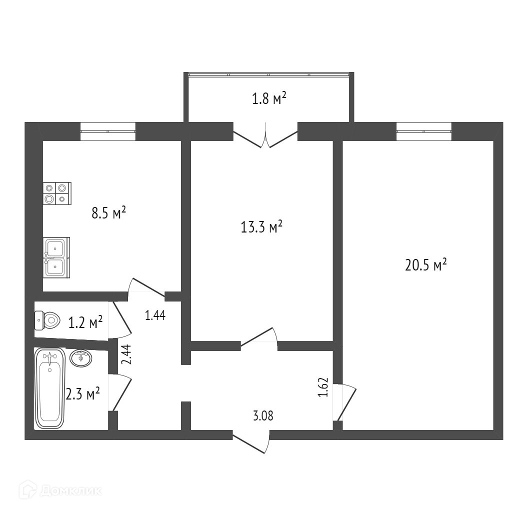Общая площадь 54 м2