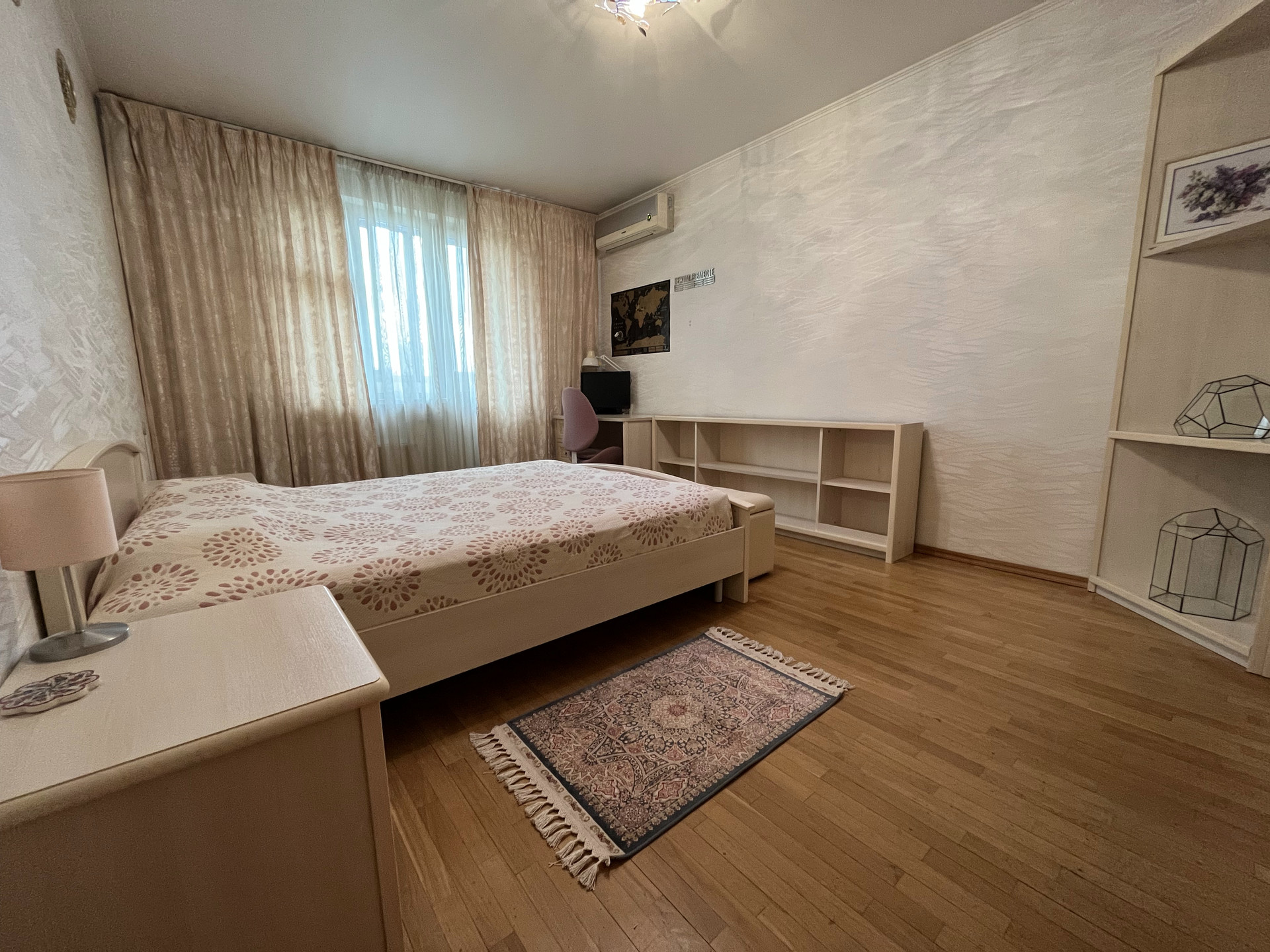 В квартире остается вся имеющаяся мебель и техника. В комнатах на полу паркет, в коридоре плитка и установлен подогрев полов. Раздельный санузел. Застекленная лоджия.