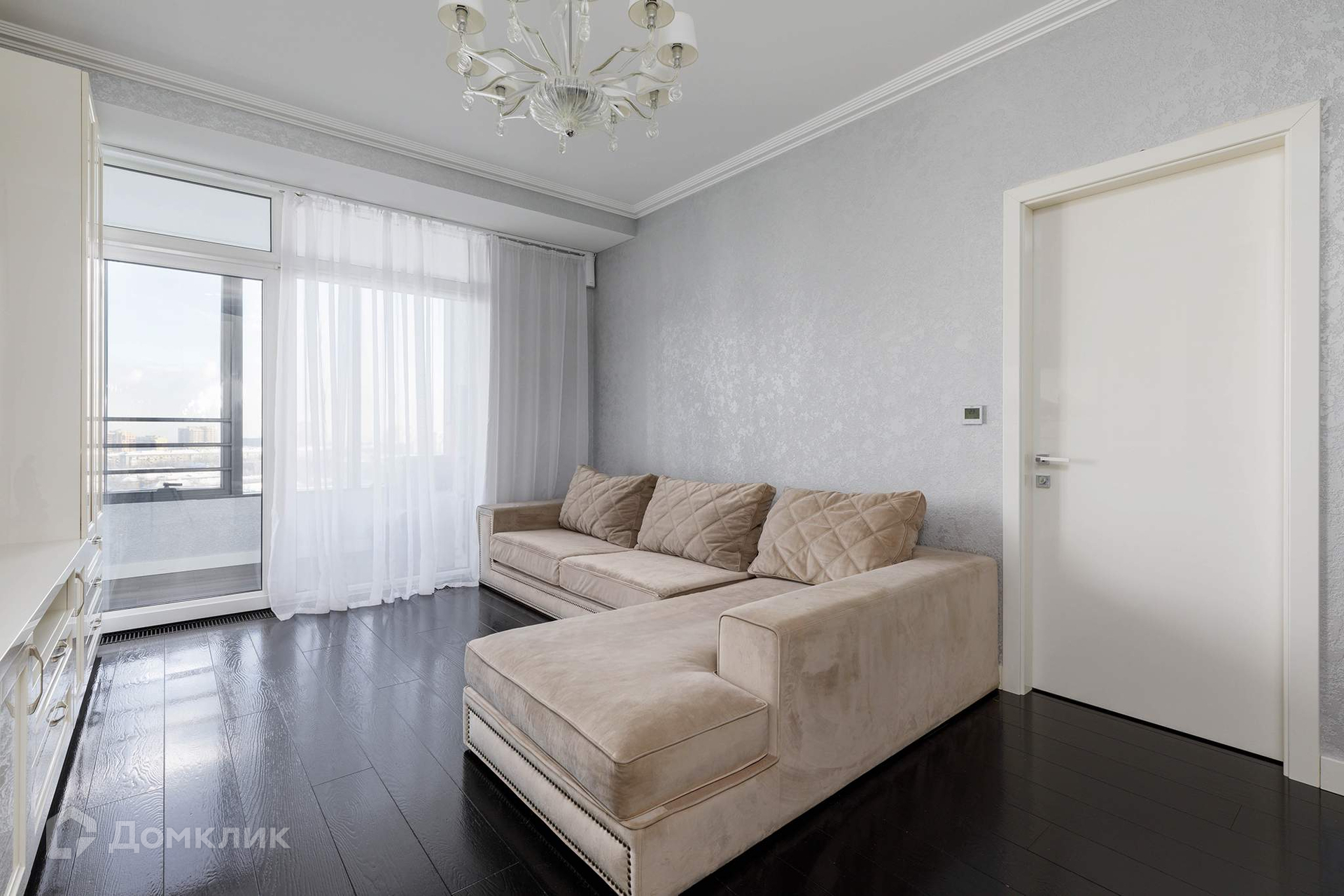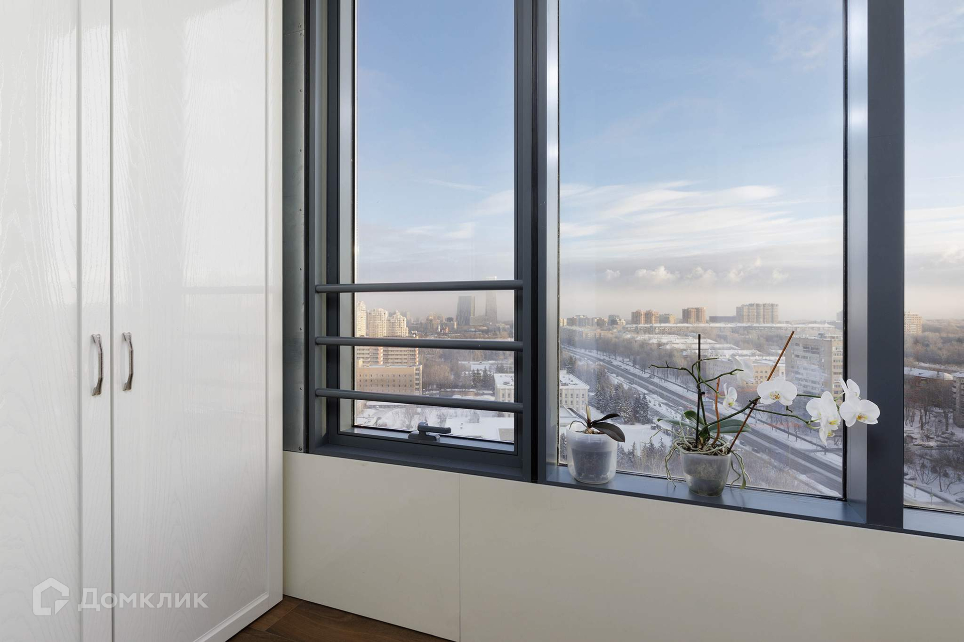 Апартамент распложен на 19-ом этаже 29-этажного монолитно-кирпичного здания. Год завершения строительства – 2017 г. Общая площадь – 96,2 кв.м. Высота потолков – 3,1 м. Просторная и функциональная планировка: прихожая, кухня-гостиная, 2 изолированные комнаты, 2 совмещённых санузла, утеплённая лоджия -7,2 кв.м. Вид из апартамента в сторону улицы Мосфильмовская и МГУ им. М. В. Ломоносова, вдали виднеется Кремль.