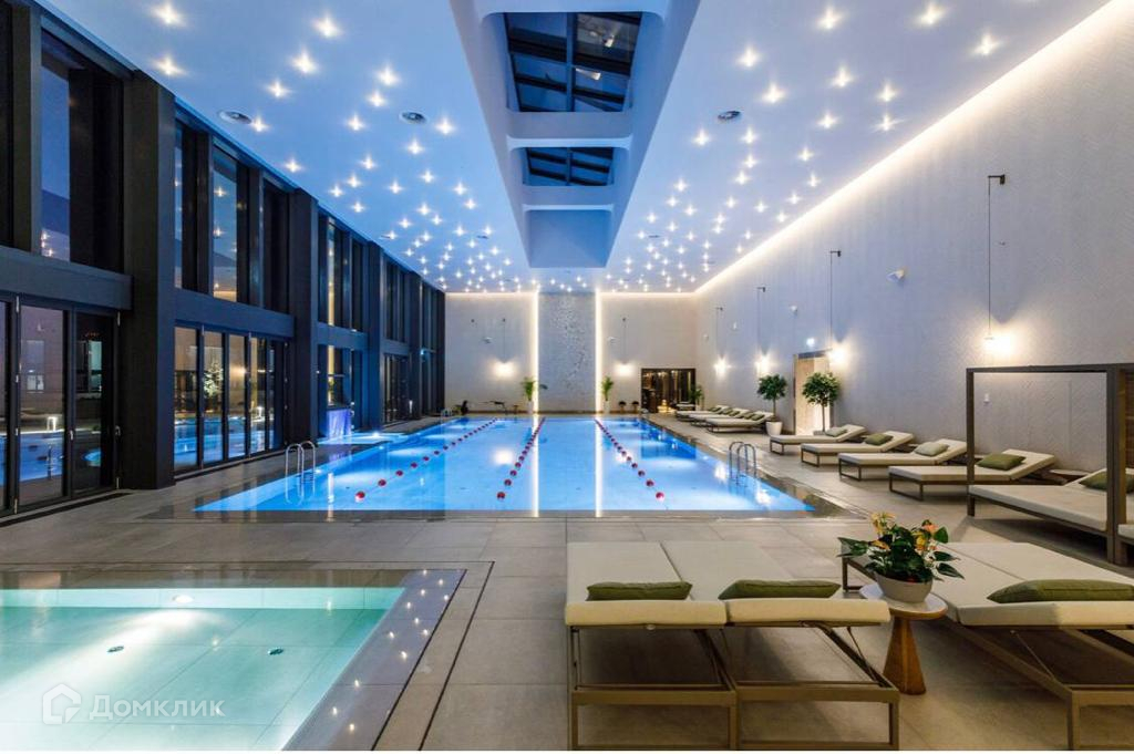 - Панорамный бассейн с джакузи под открытым