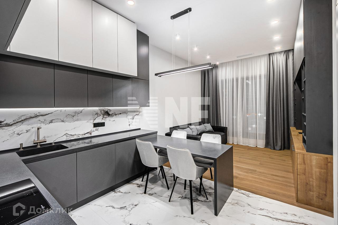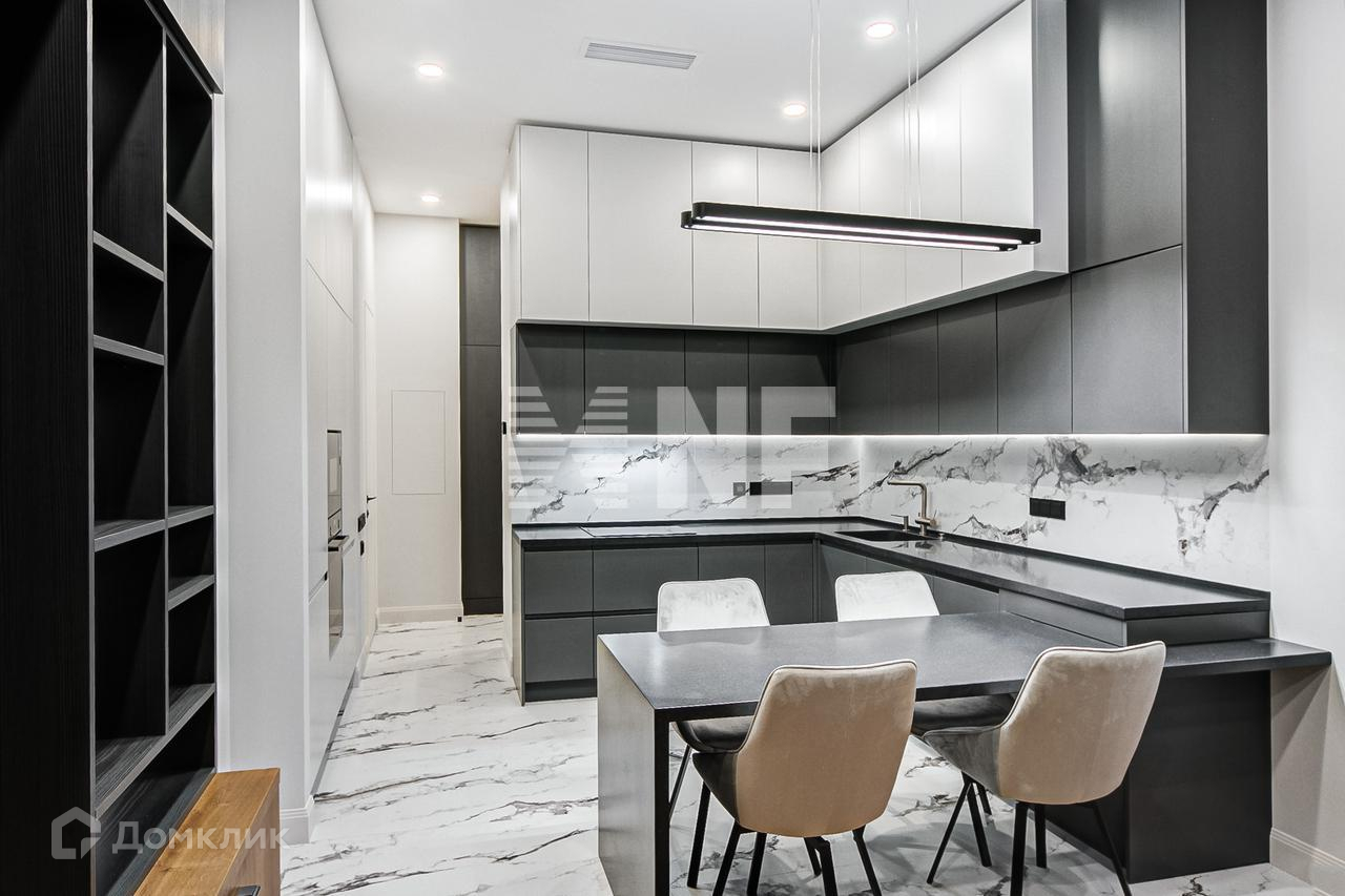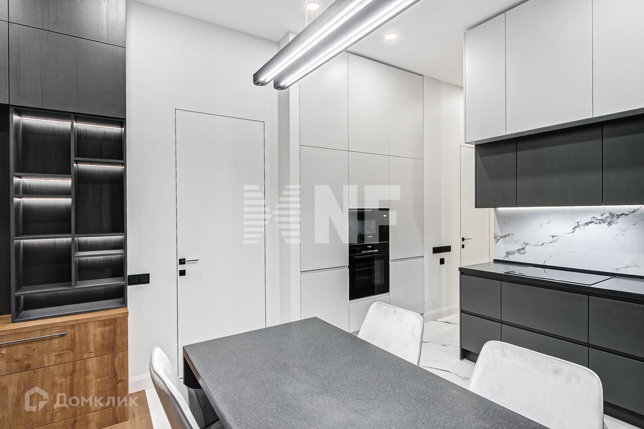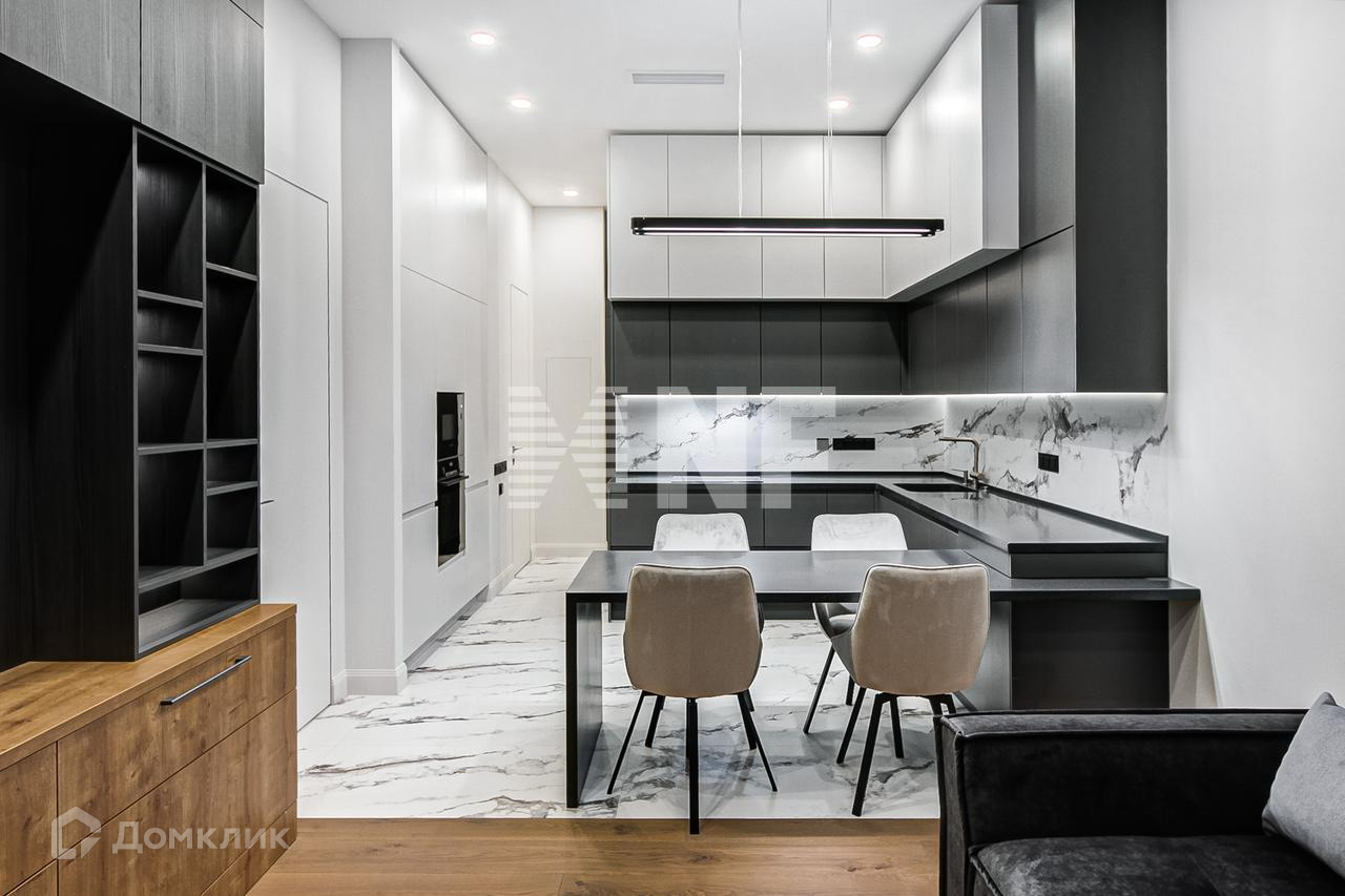 Выполнена отделка в современном стиле, установлена выполненная на заказ мебель, бытовая техника и сантехника ведущих брендов.