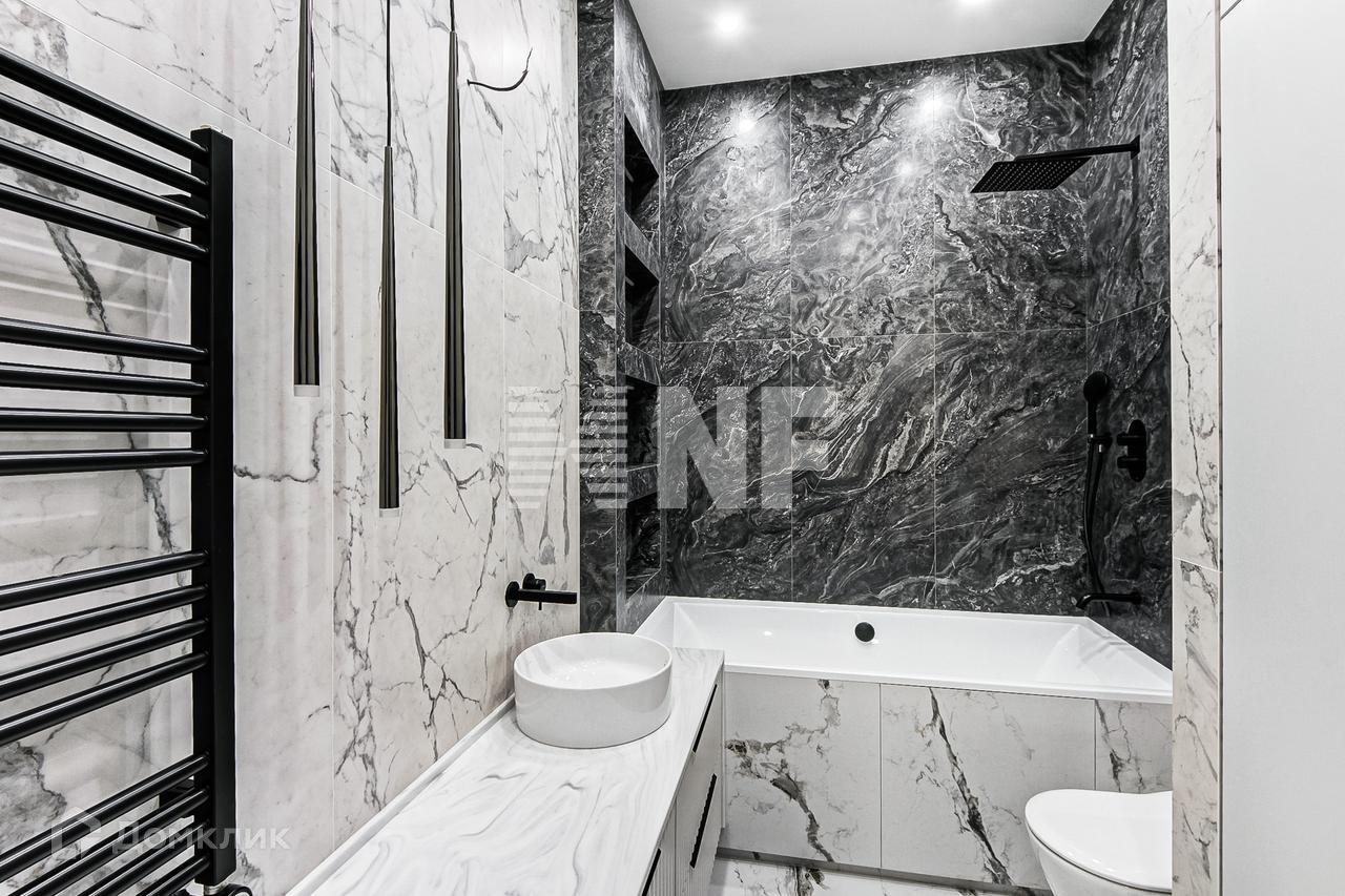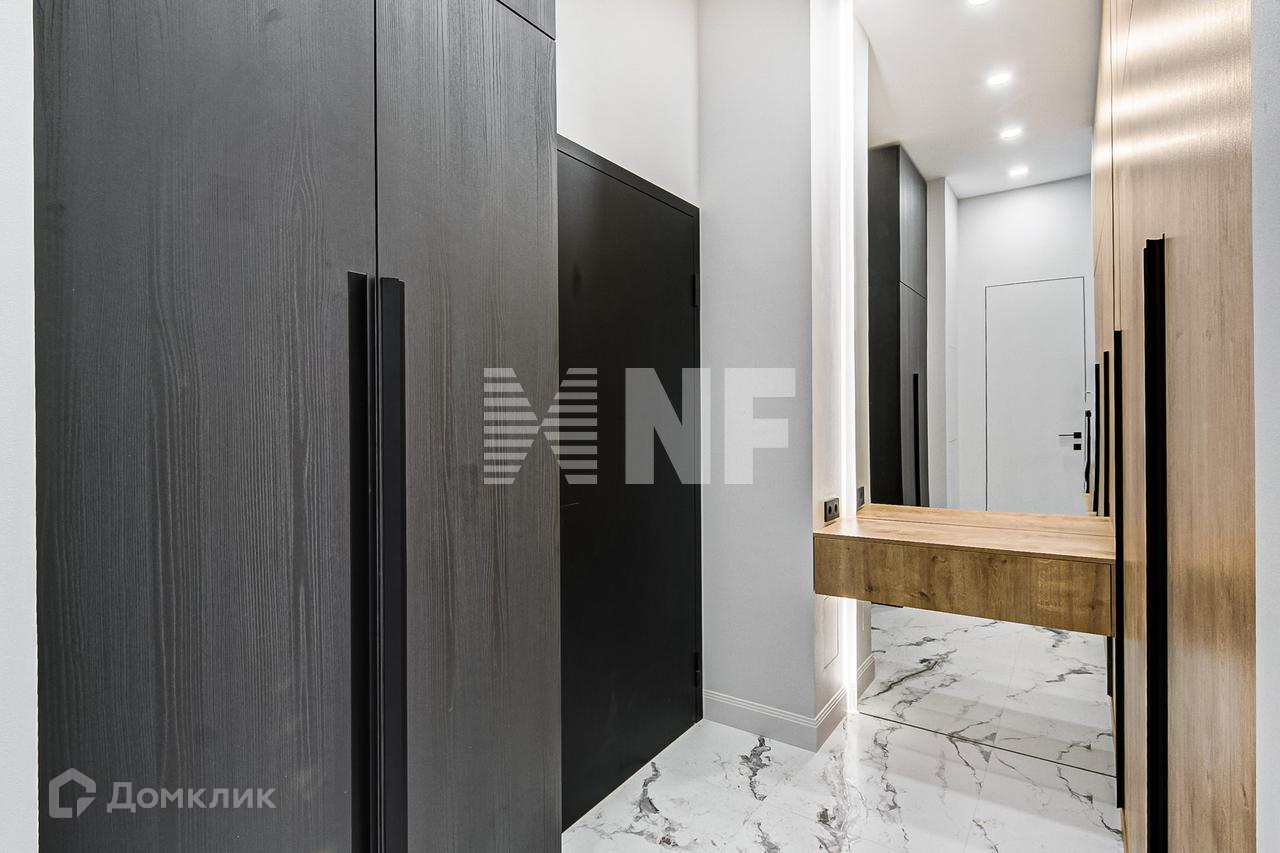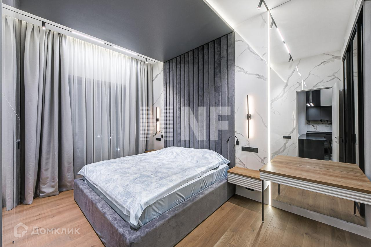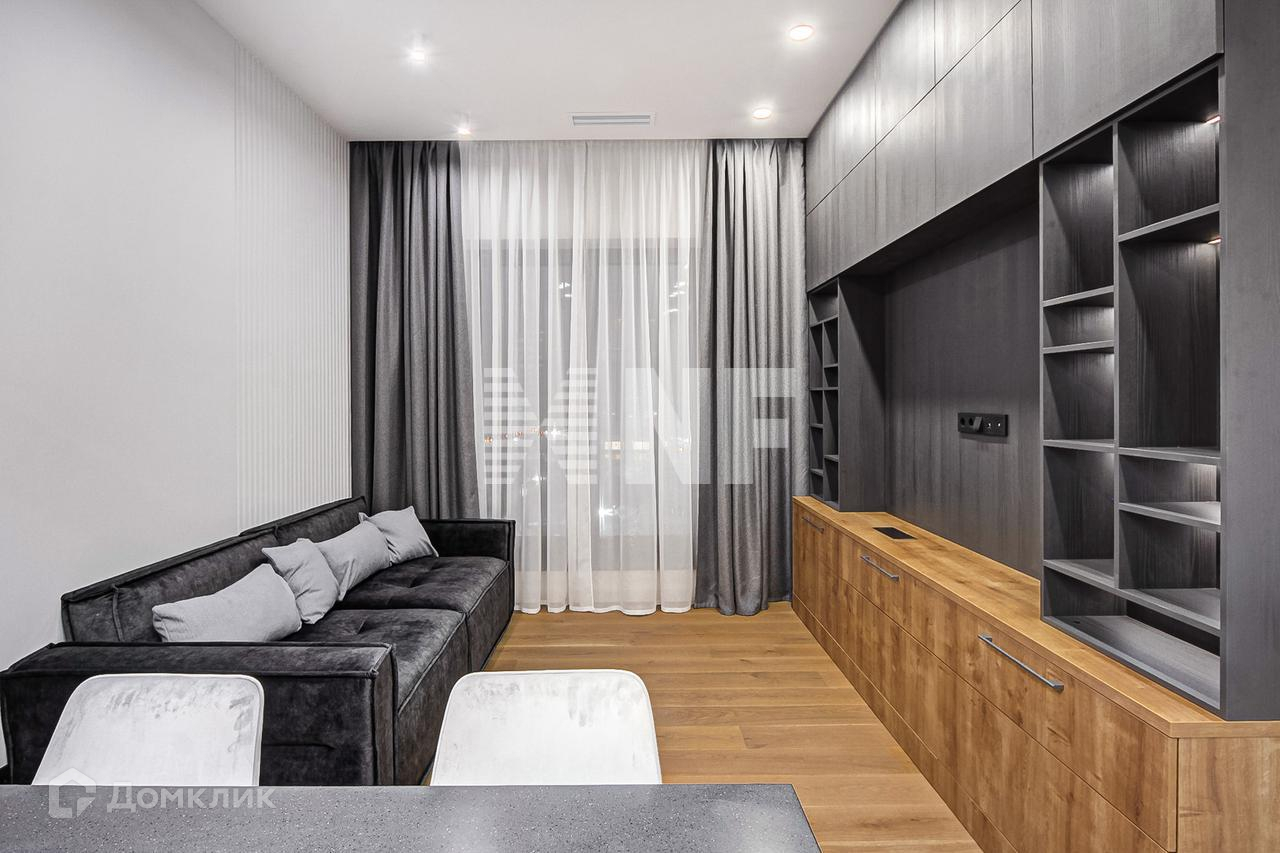 Выполнена отделка в современном стиле, установлена выполненная на заказ мебель, бытовая техника и сантехника ведущих брендов.