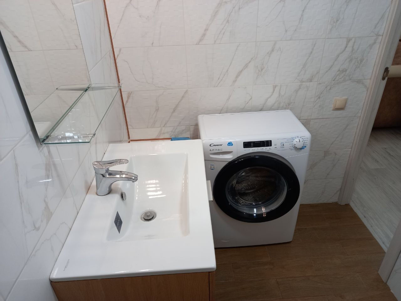 Совмещенный вместительный санузел, в нем отлично поместятся стиральная машина, раковина, унитаз и душевая кабина.(поддон душевой)(Фото примерное прилагается)