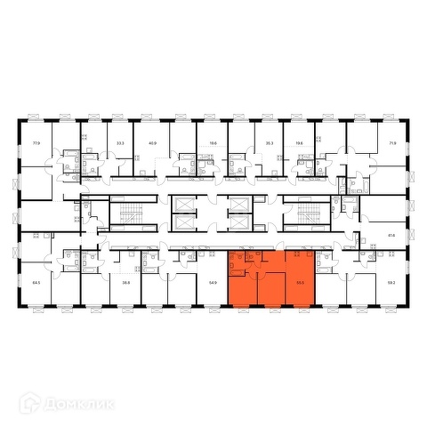 Общая площадь 55.5 м2