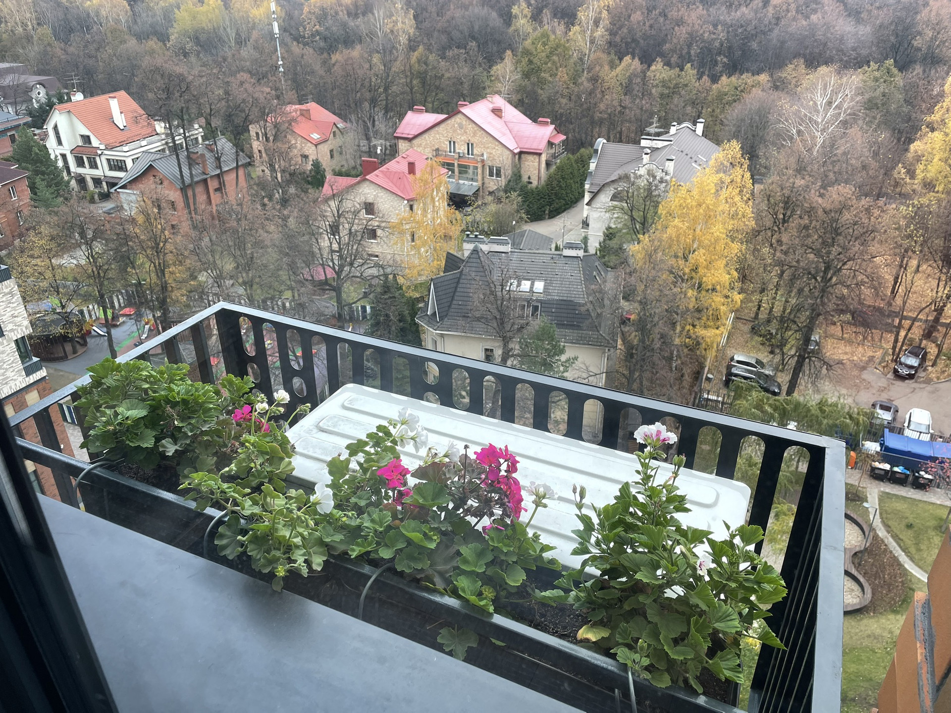 Есть огромная своя закрытая детская площадка и платный детский сад на первом этаже, своя футбольно-баскетбольная площадка, а также кофейня, груминг(стрижка животных), магазин магнит и центр физического развития! Во двор периодически заглядывают белки, рядом неоднократно замечали лосей, лис, ласок и даже коршунов! В парке рядом много мышей полевок, а белки настолько домашние, что берут орехи прямо из рук, и все это в Москве в 20 минутах езды от Кремля (если без пробок). Второго такого дома больше в Москве нет, я искал! Дом стоит в полной изоляции от внешнего мира, полное ощущение загородной жизни, из окна видны коттеджи дома ветеранов и Терлецкий парк.