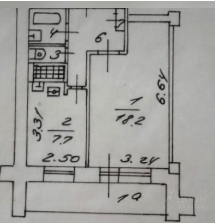 Жилая площадь 18.2 м2