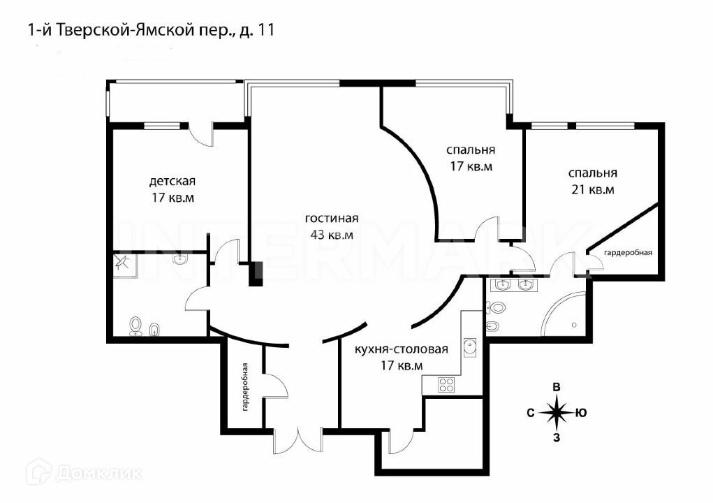 4-комнатная квартира, 145.7 м2, этаж 4 / 12, на продажу в Москве, 1-й Тверской-Ямской переулок, 11