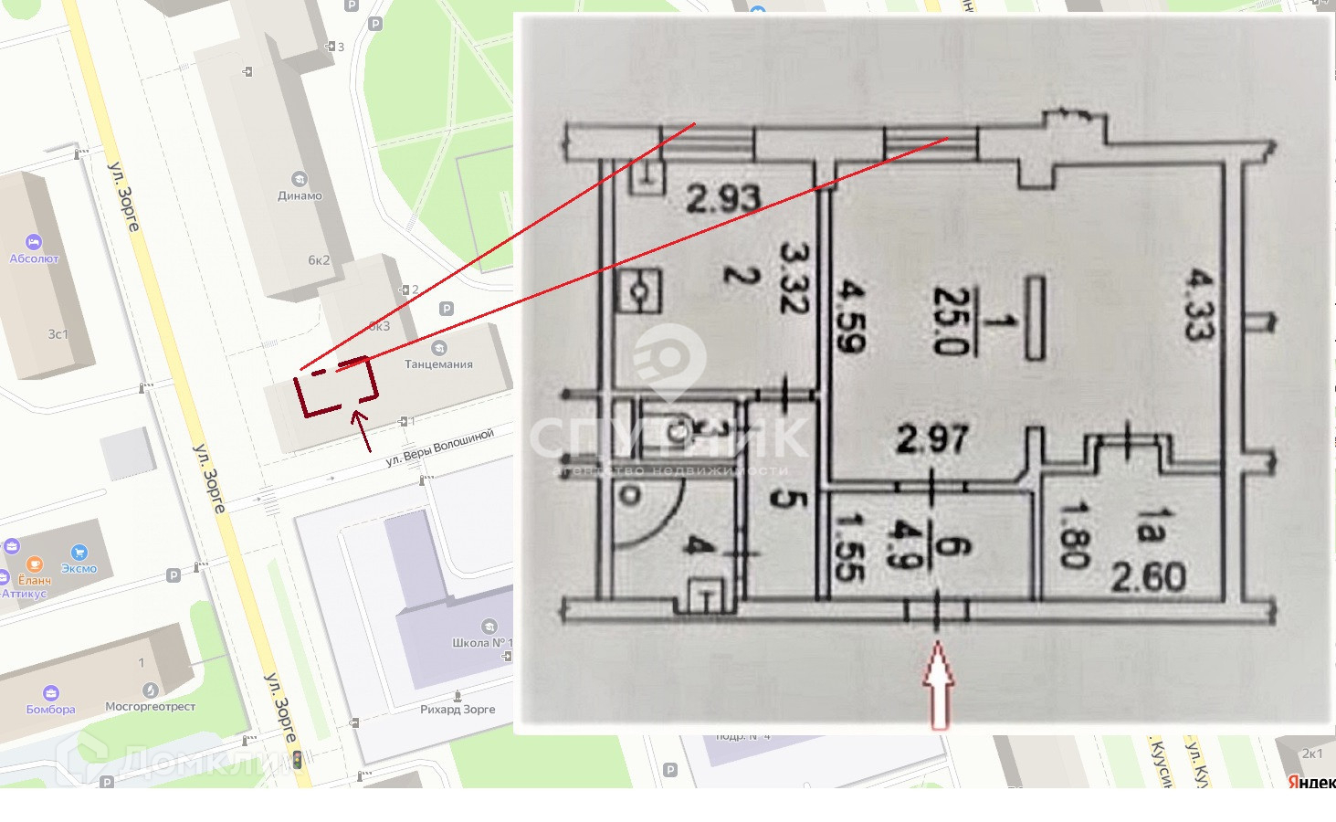 1-комнатная квартира, 54.2 м2, этаж 2 / 6, на продажу в Москве, улица Зорге, 6к3