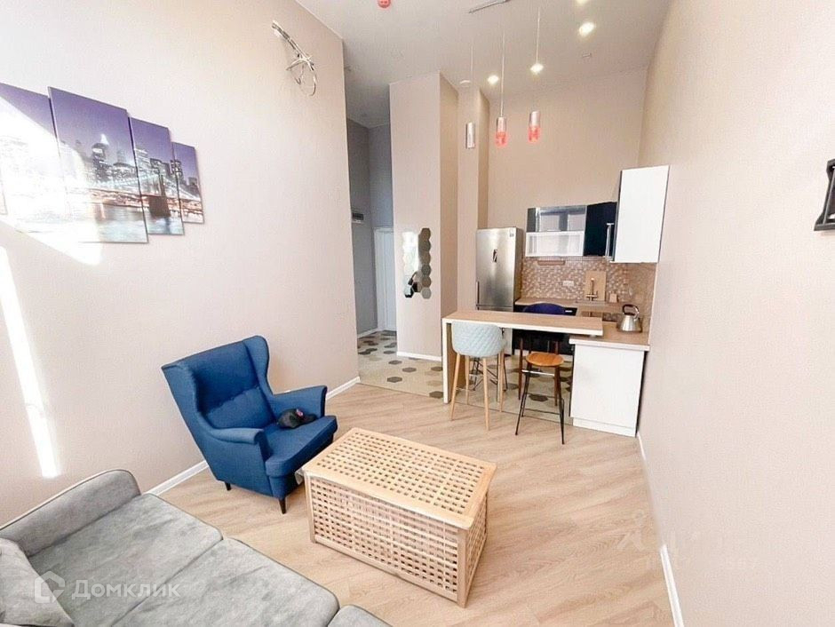 Квартира состоит из 1 изолированной комнаты площадью 11 м² и кухни-гостиной - 18 м² с совмещенным санузлом. Выполнен качественный ремонт. В квартире так же можно исполнить двухуровневый формат, так как потолки в высоту 4,8 м. На территории ведется круглосуточное видеонаблюдение, есть парковка.