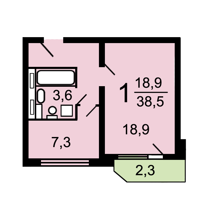 Общая площадь 39 м2