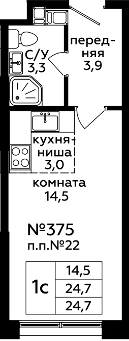 Общая площадь 24.7 м2