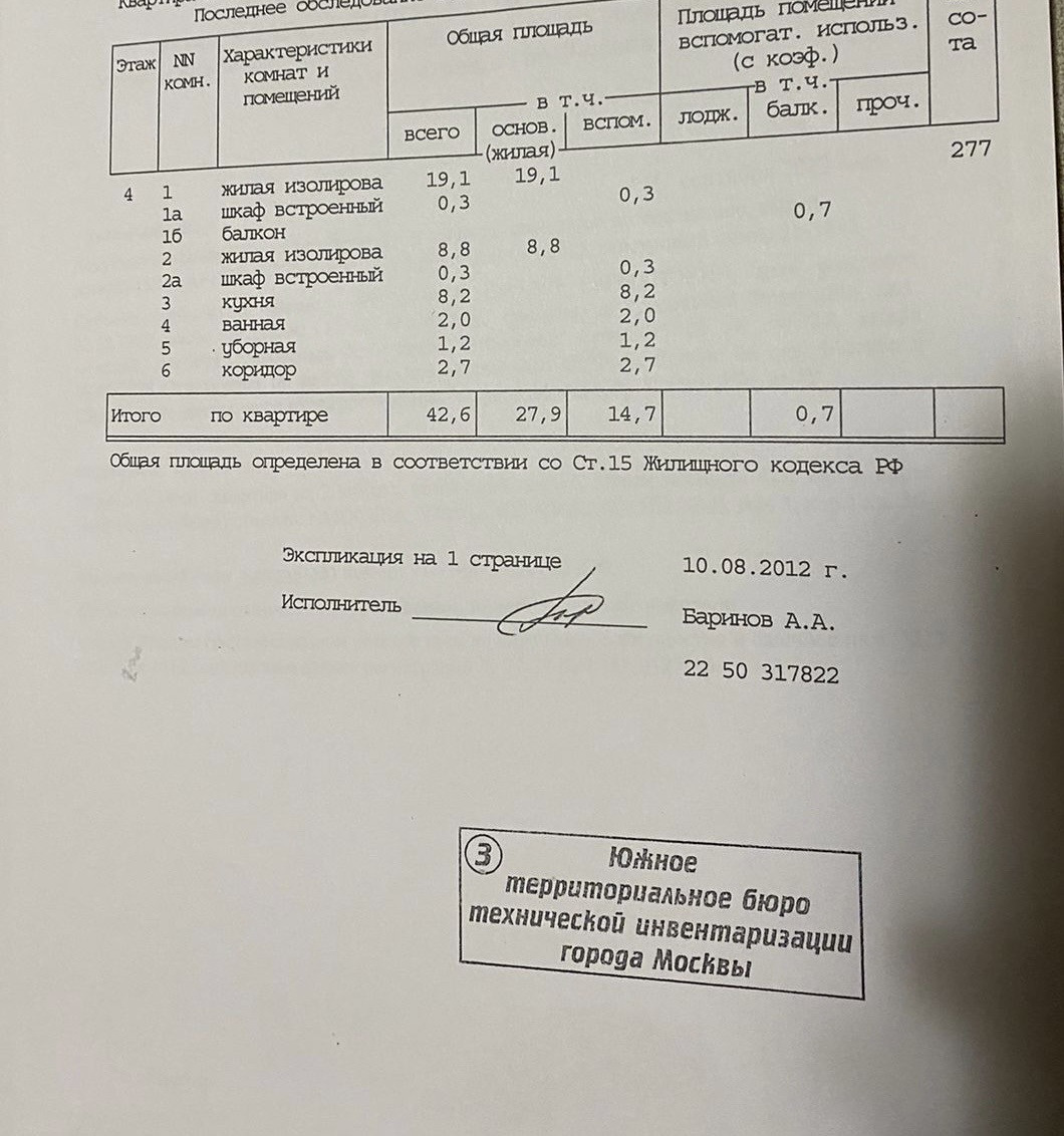 Общая площадь 42.6 м2