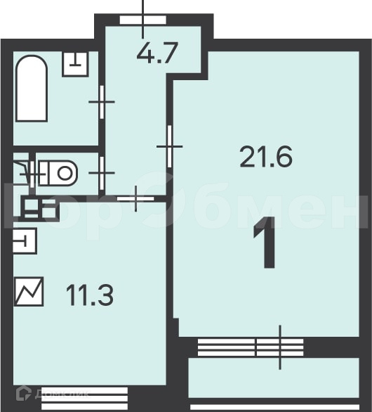 Жилая площадь 21.6 м2