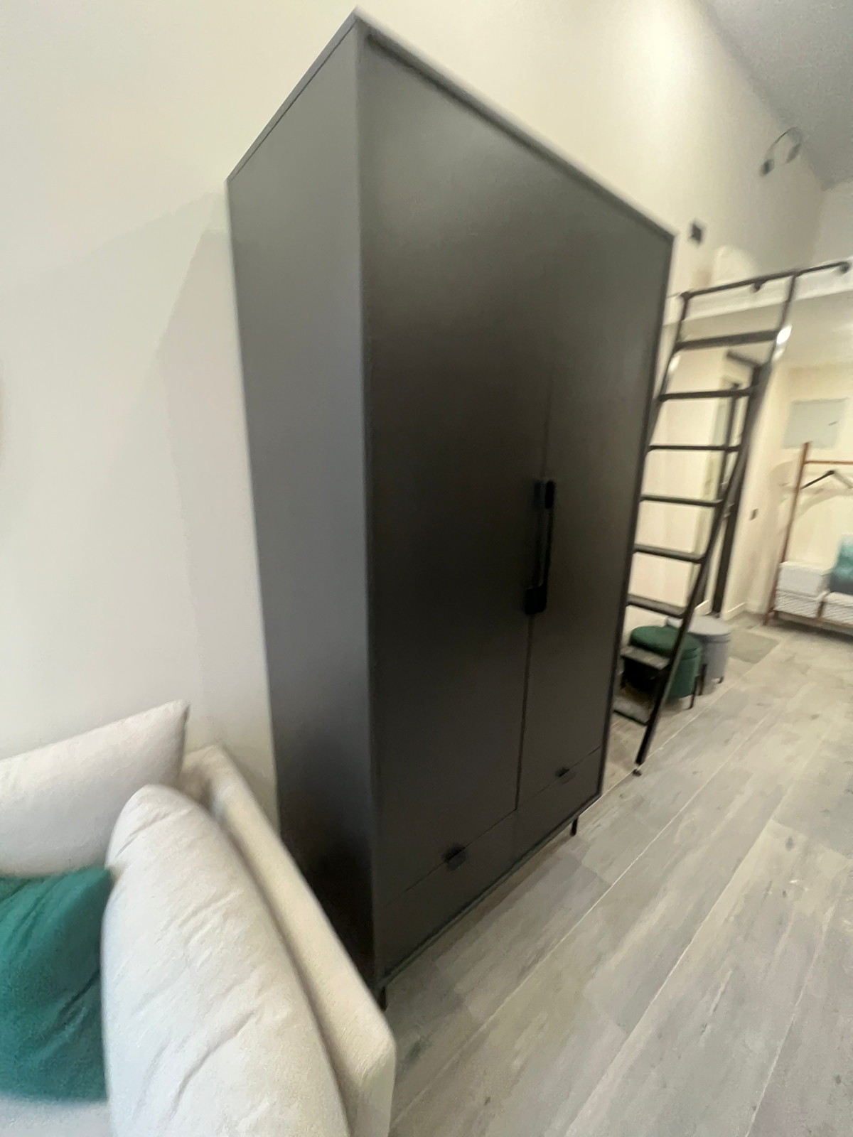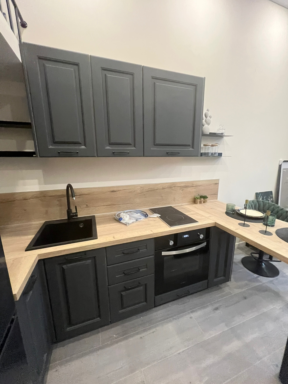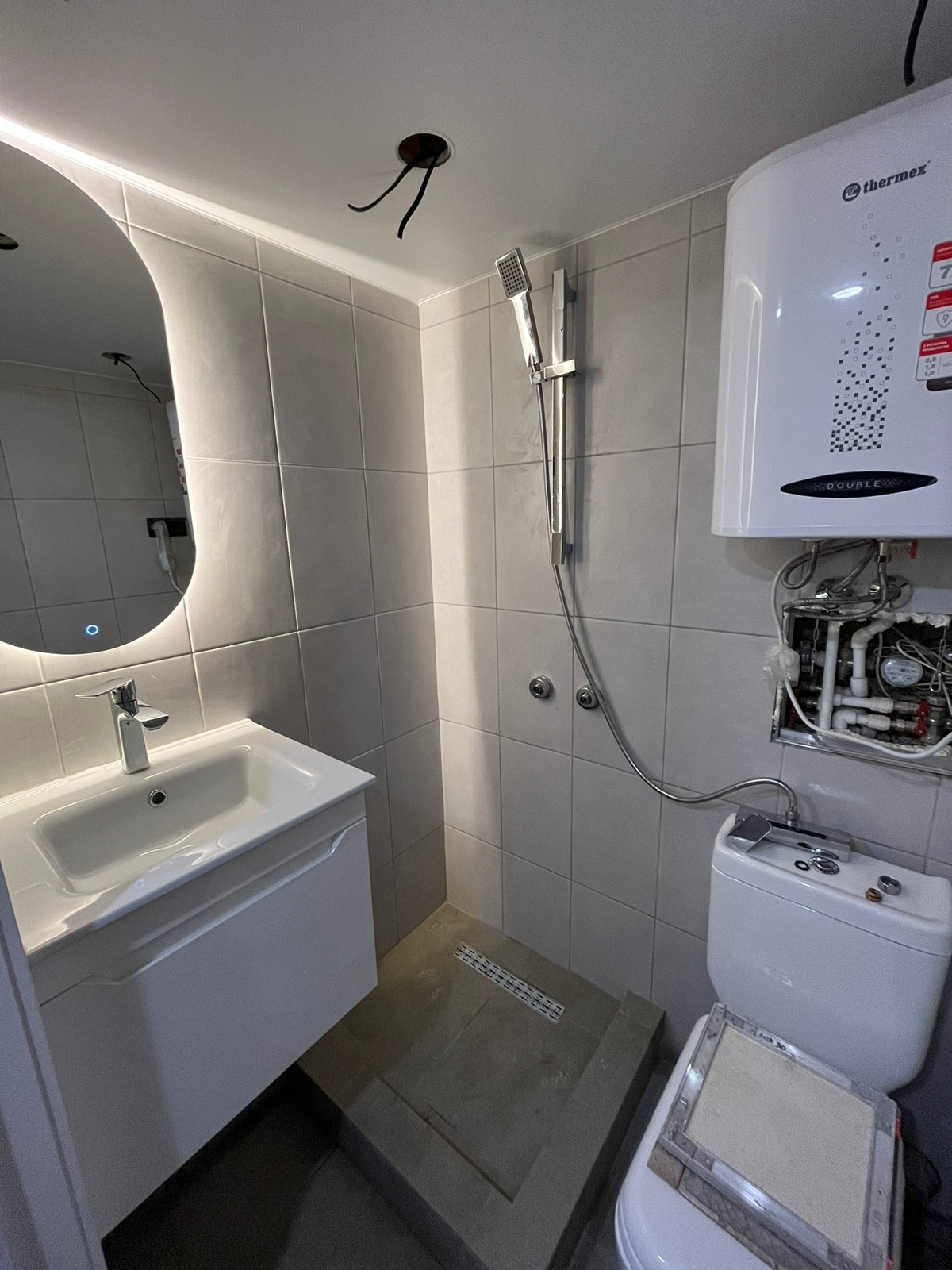 О студии: чистовая отделка, ламинат, натяжные потолки, выводы под коммуникации; санузел: унитаз, раковина, смеситель, водонагреватель;