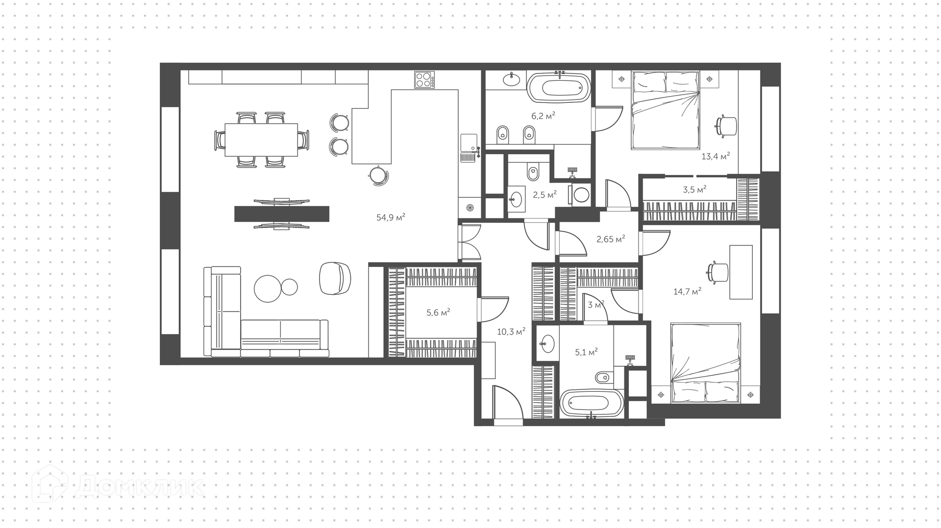 Общая площадь 126.7 м2