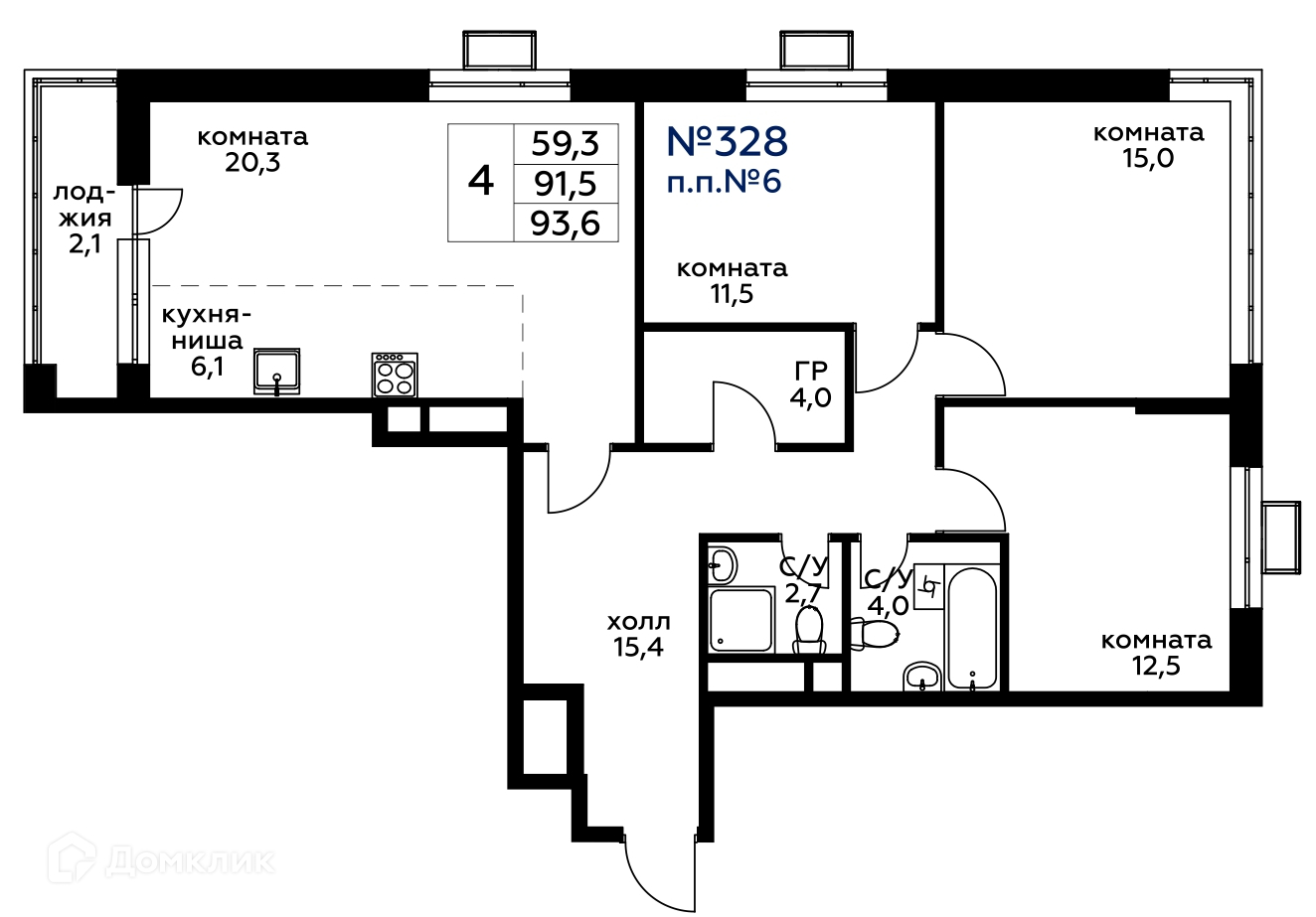 Общая площадь 93.7 м2