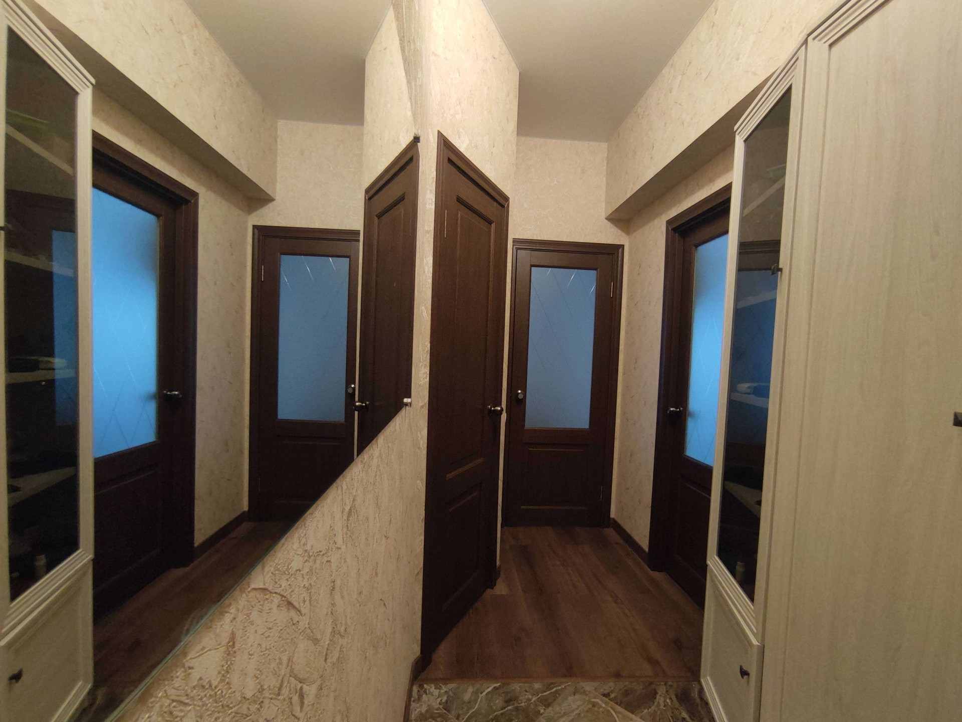 Ремонт 2021 года. Квартира разбиралась до состояния бетонных стен и полностью оформлялась заново. Для себя, качественно и с душой: новая сантехника, батареи, переустановка и выравнивание стен из блоков, новая электрика. Дорогие и долговечные материалы (керамогранит, винил-флизелиновые обои, кварц-виниловый ламинат, ламинат 33 класса), натяжной потолок с коммуникациями. Много розеток.