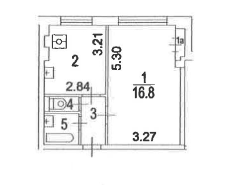 Жилая площадь 16.8 м2