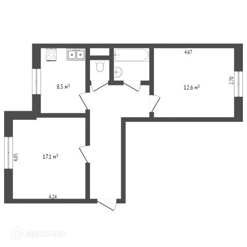 Общая площадь 51.1 м2