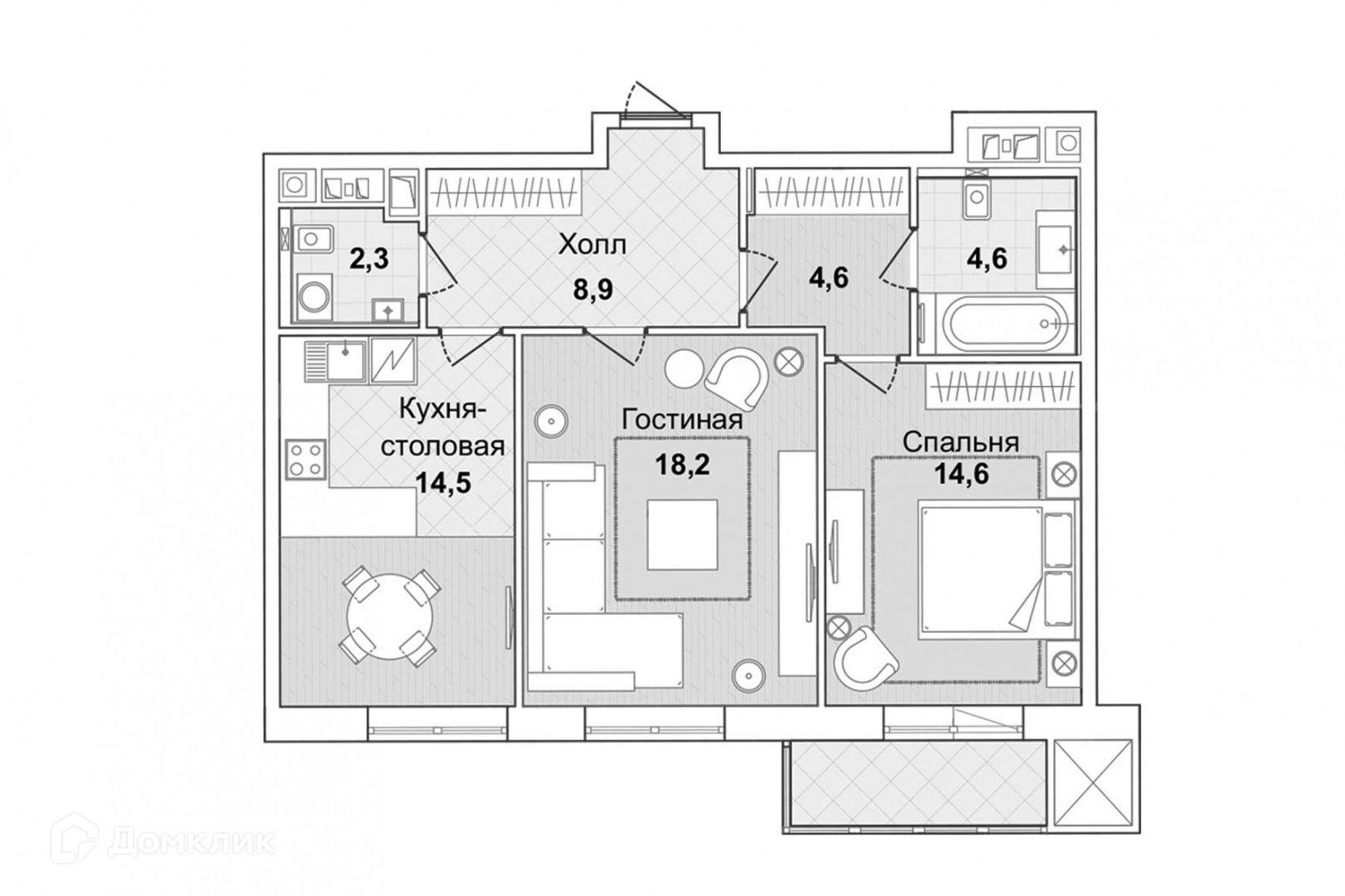 Общая площадь 70 м2