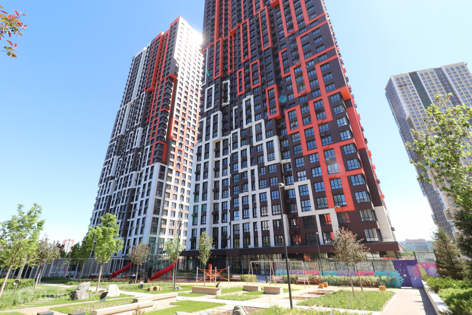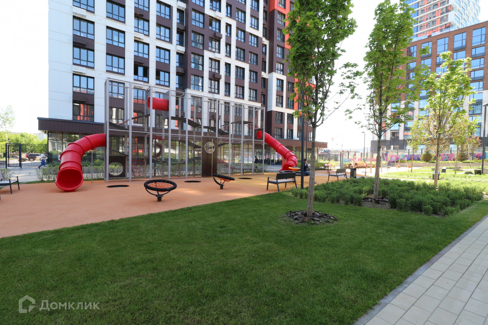 Эко-двор с ландшафтным дизайном закрыт от машин, в нем расположены детские и спортивные площадки, зоны отдыха с парковой мебелью.