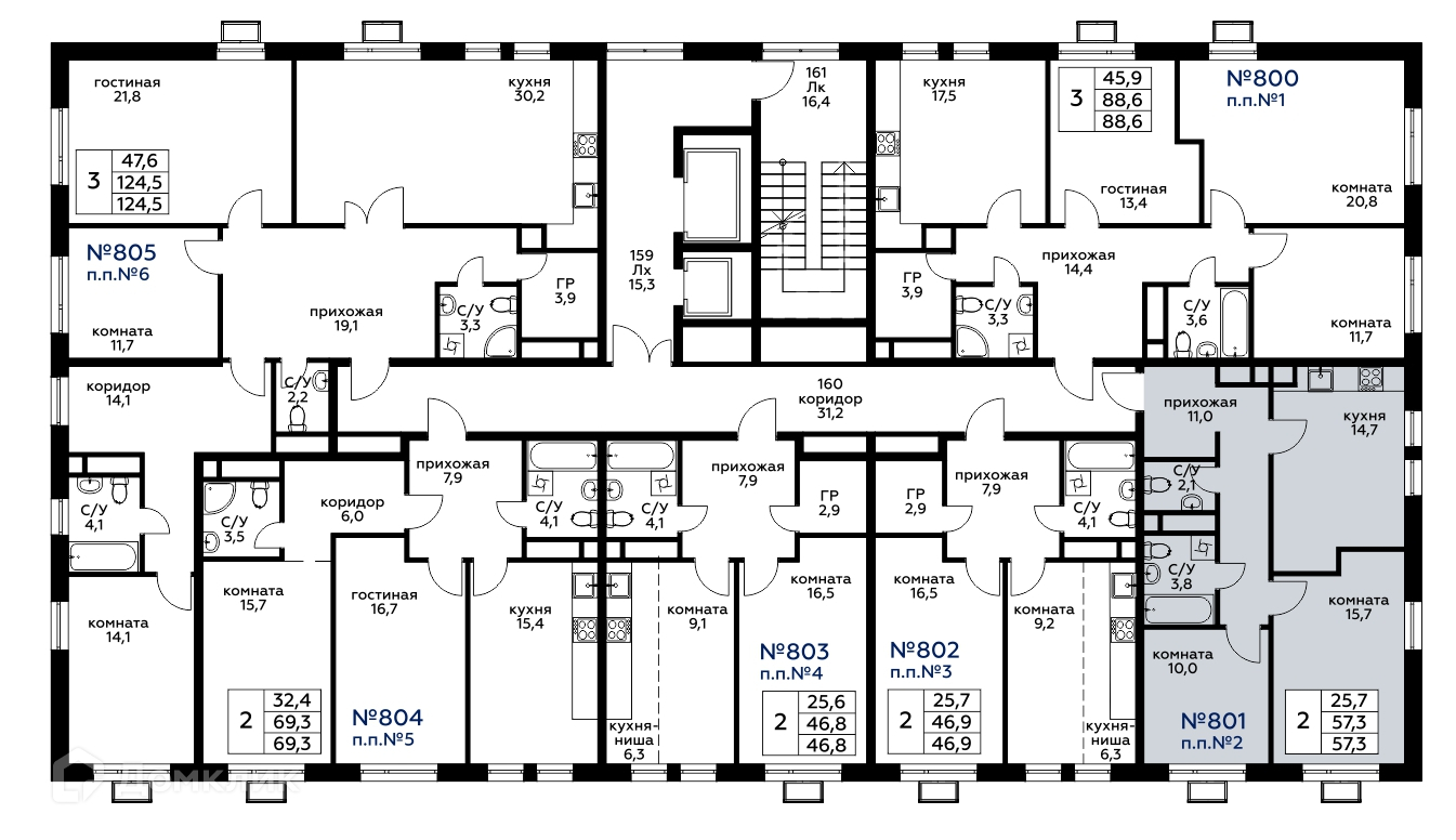 Общая площадь 57.3 м2