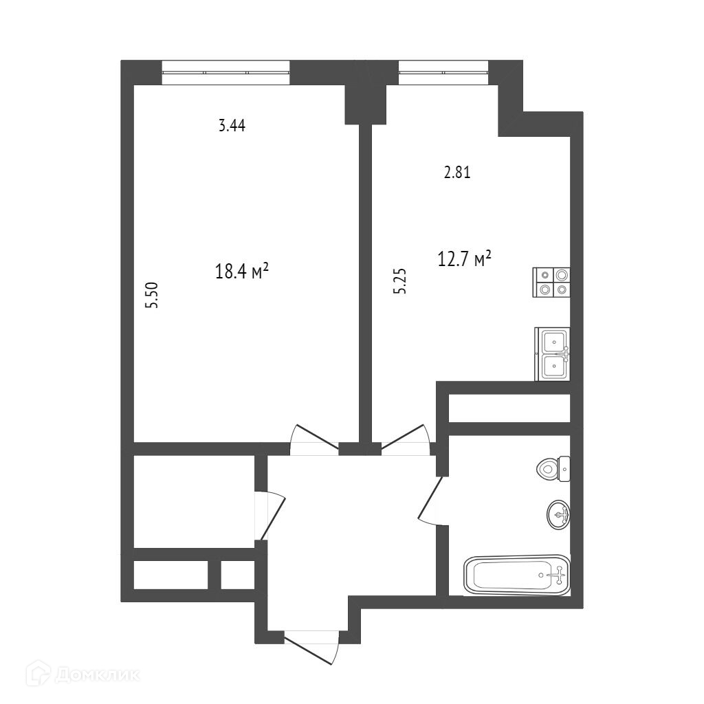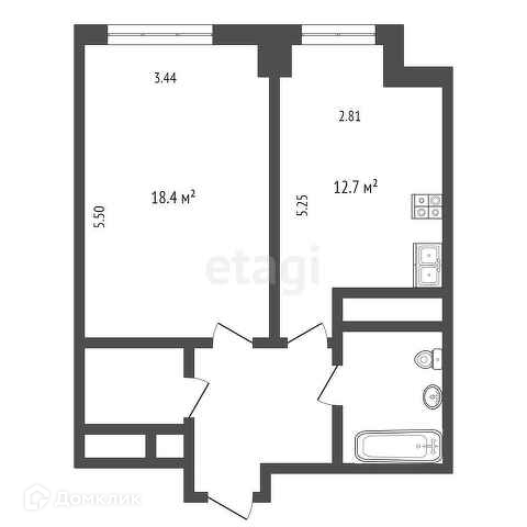 О КВАРТИРЕ: Общая площадь – 44 м², кухня – 12,7 м².