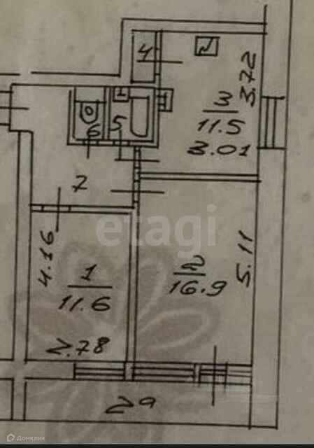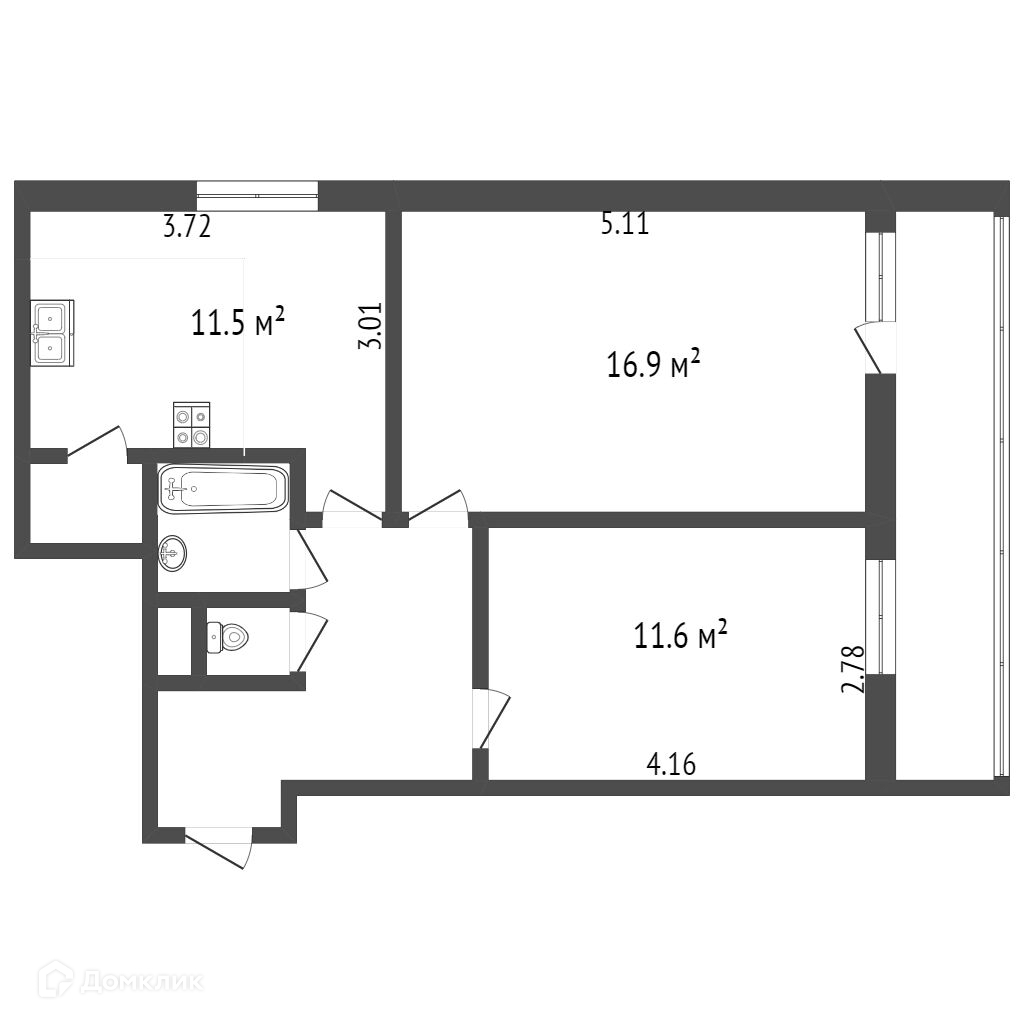 Общая площадь 54 м2