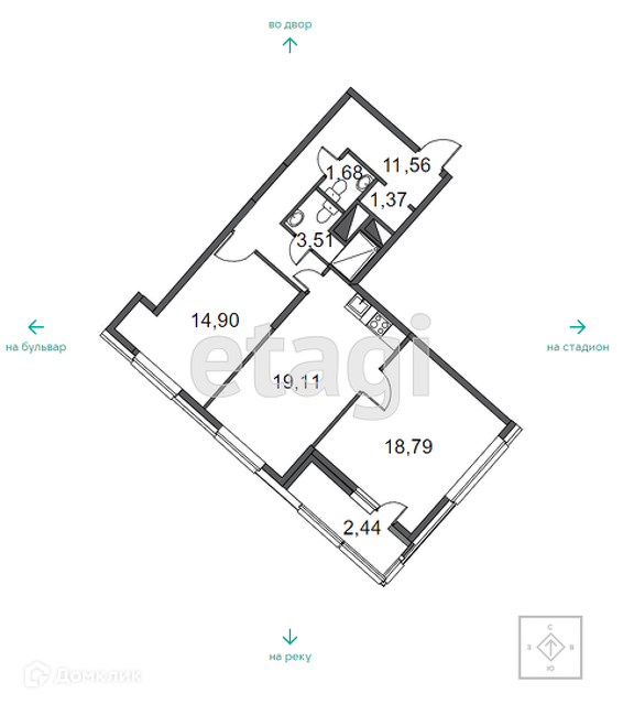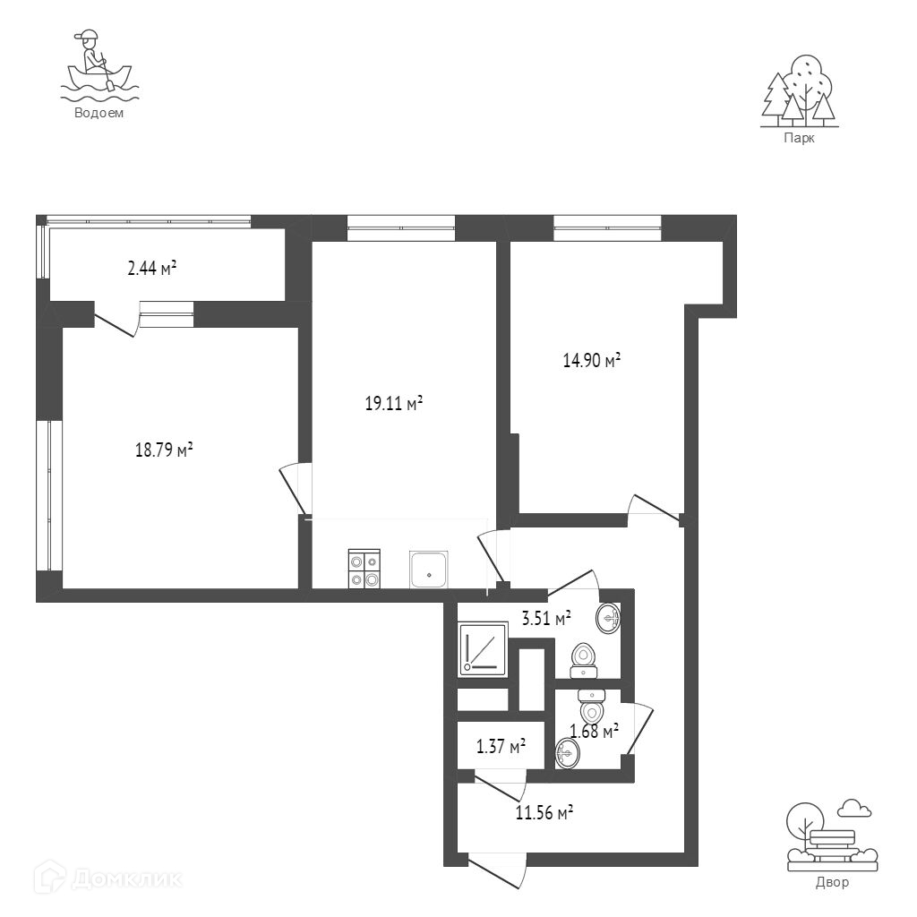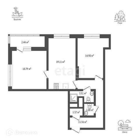 Площадь кухни 19.11 м2